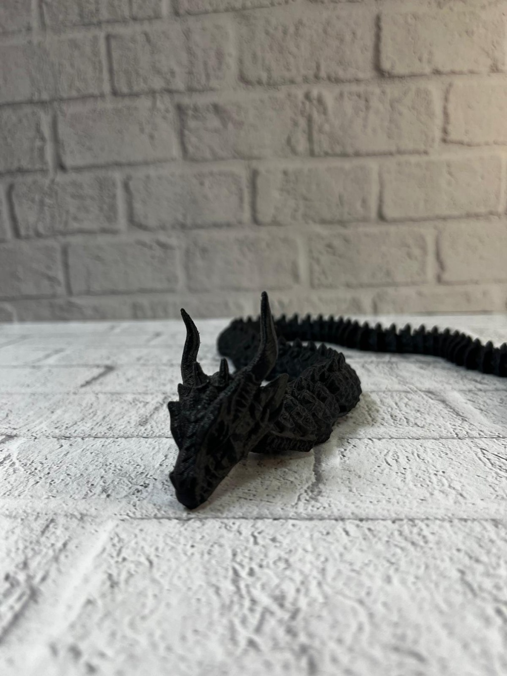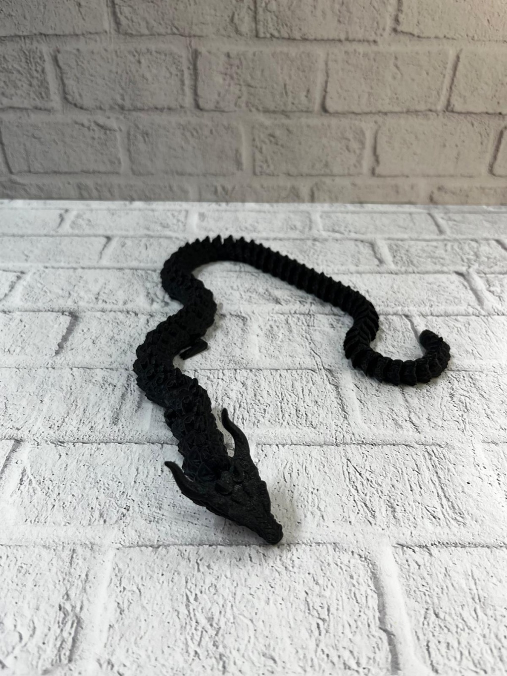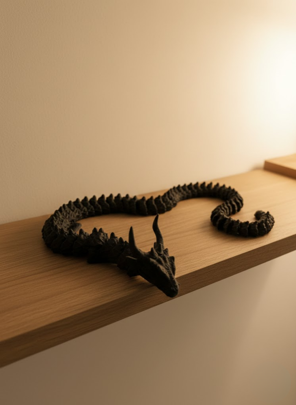 Hareketli Siyah Ejderha Figür Uzun Gövdeli Fantastik Masa ve Raf Dekoru -