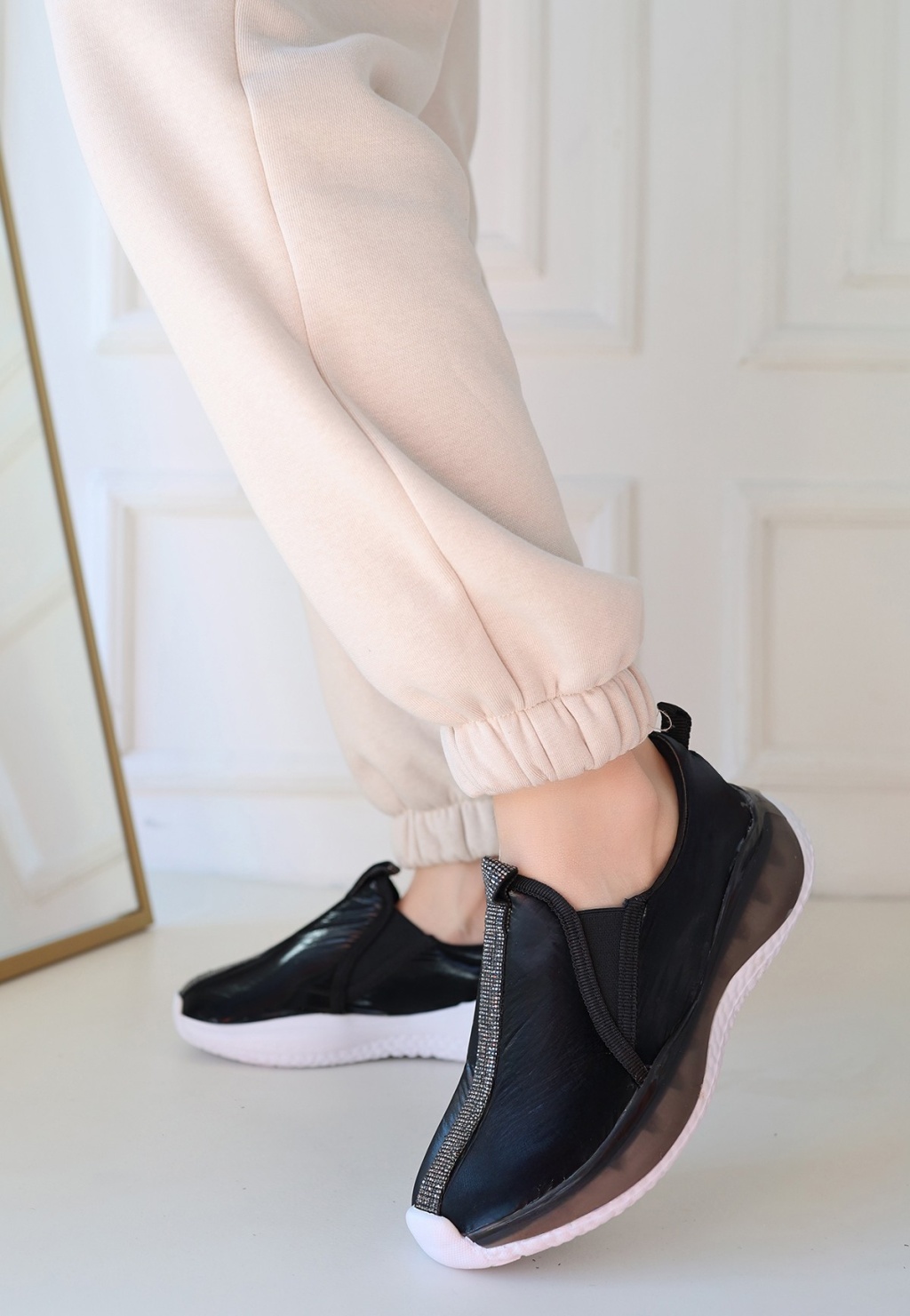 Renk: SiyahDetay: Yandan Lastikli Ortapedik SporTopuk Boyu: 2 cm.Taban Materyali: Faylon Tabanİç Materyali: Pad'li İç Taban.Kalıp: Standart Ayak Ölçülerine Göre Tam Kalıp.
