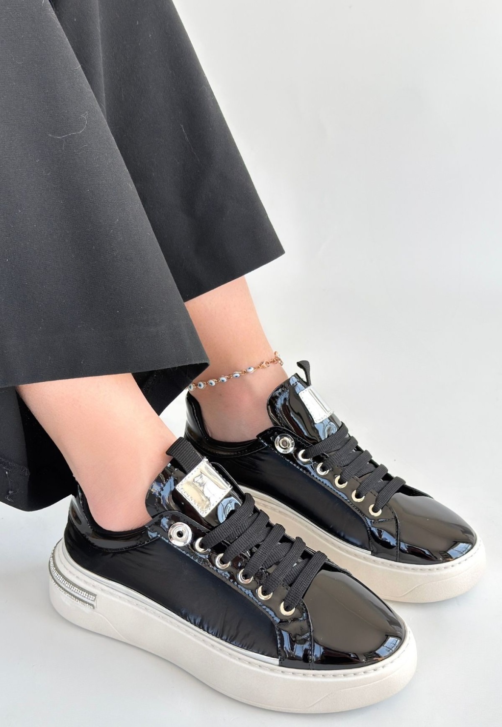 Hley Siyah Rugan Paraşüt Detaylı Bağcıklı Spor Ayakkabı -