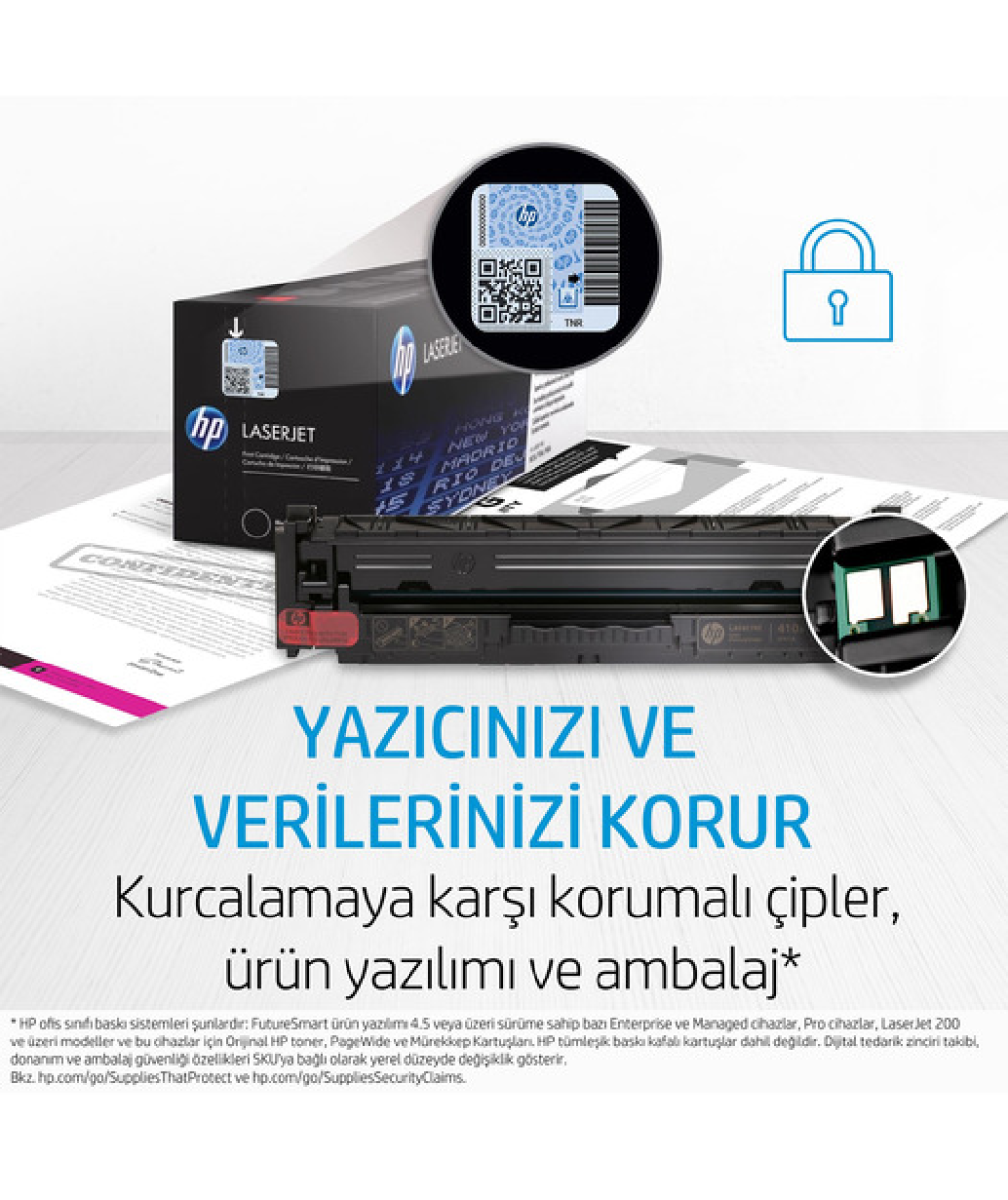 | Açıklama | Sahteciliği önlerken HP yazıcınızın veya MFP’nizin çalışmak için üretildiği yüksek hızlarda profesyonel kalitede renkli baskılar üretmek için idealdir. Yazıcınız için tasarlanmış JetIntelligence özellikli Orijinal HP Tonerlerle canlı renkli belgeler basın. Yüksek hacimli ofis baskıları için yüksek kapasiteli seçenekleri tercih edin[1] ve HP sahteciliği önleme teknolojisi ile sahte ürünlere karşı koruma sağlayın. |