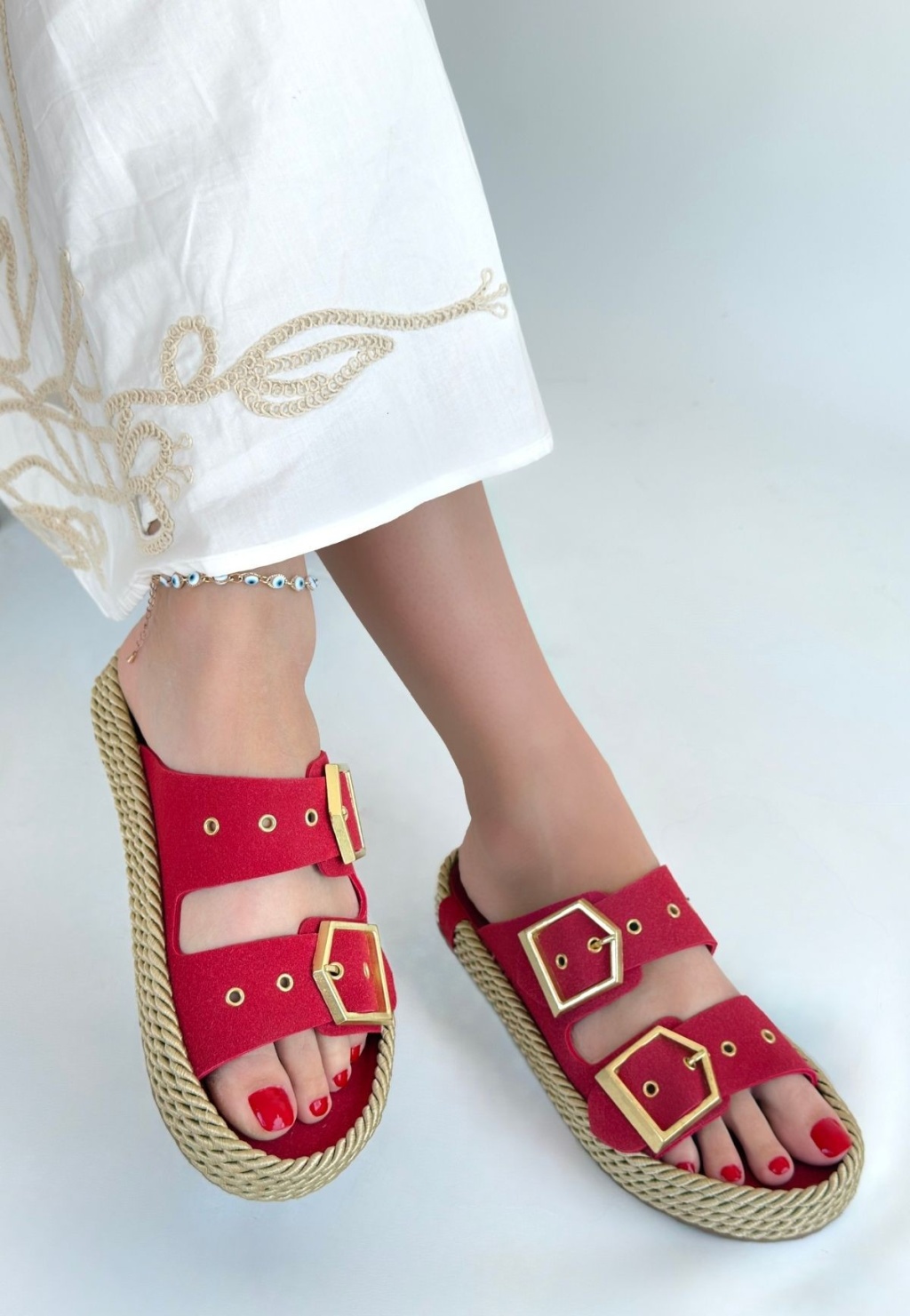 İces Kırmızı Nubuk Terlik -