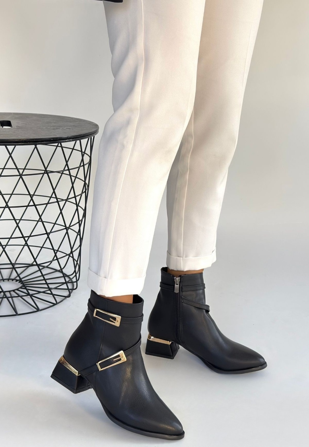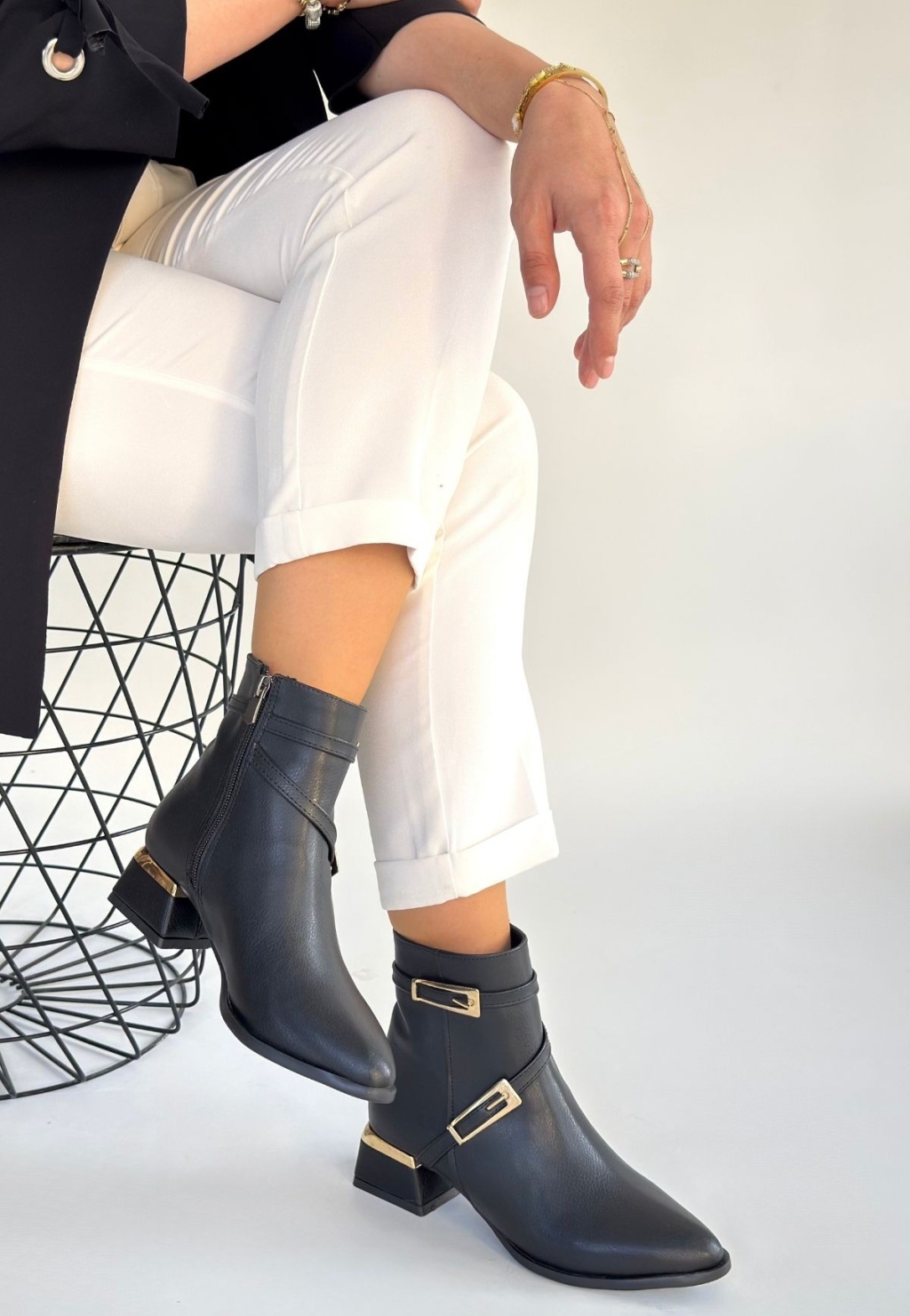 Renk: SiyahDetay: Topuklu Yandan FermuarlıuMalzeme: CiltTopuk Boyu: 3 cm.Taban Materyali: Neolik Tabanİç Materyali: Pad'li İç Astar