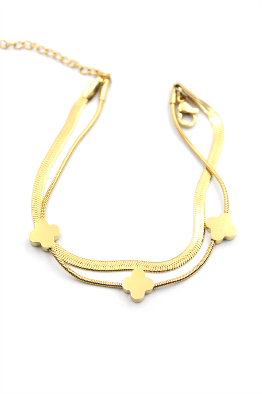 İtalyan Zincir Çoklu Yonca Bileklik - Altın