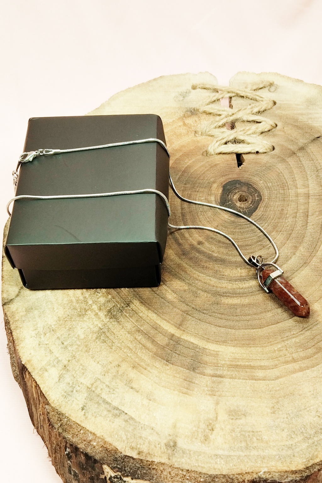 | Jasper Doğal Taşı Zincirli El Yapımı Tasarımlı Kolye Uç: 3,5 cm Zincir: 20 cm Kutulu |