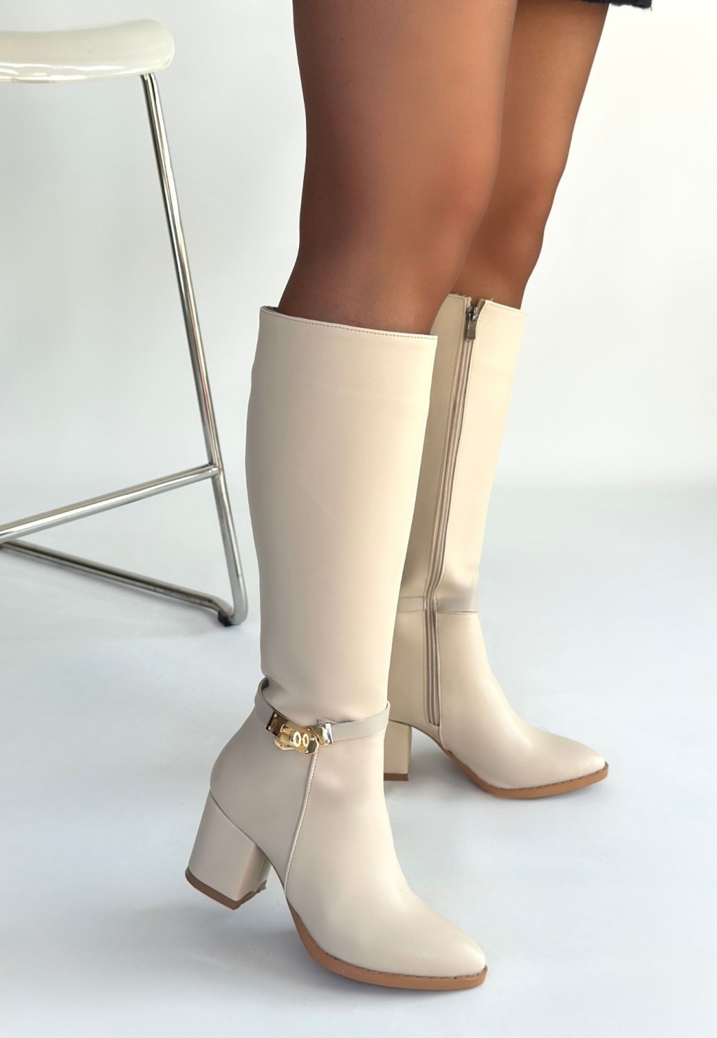 Jeoli Bej Cilt Topuklu Çizme - Lisinya