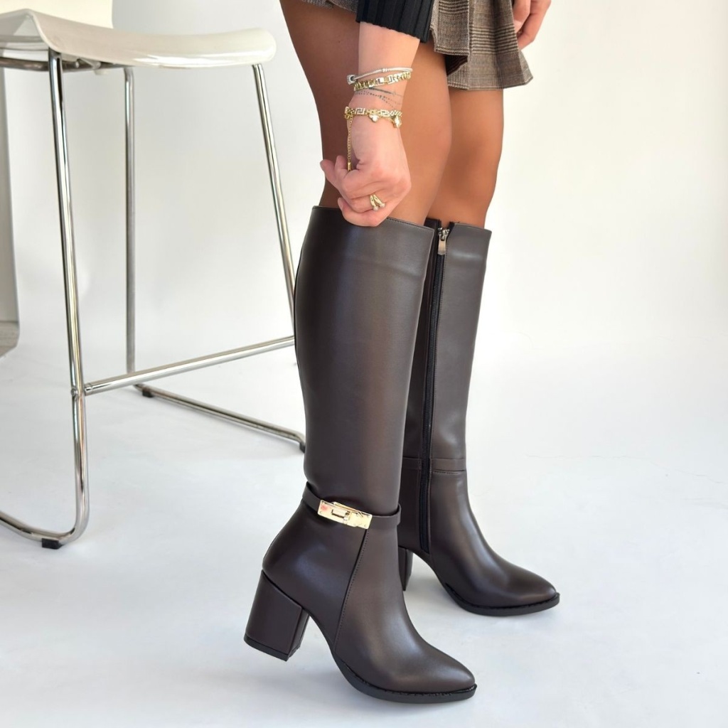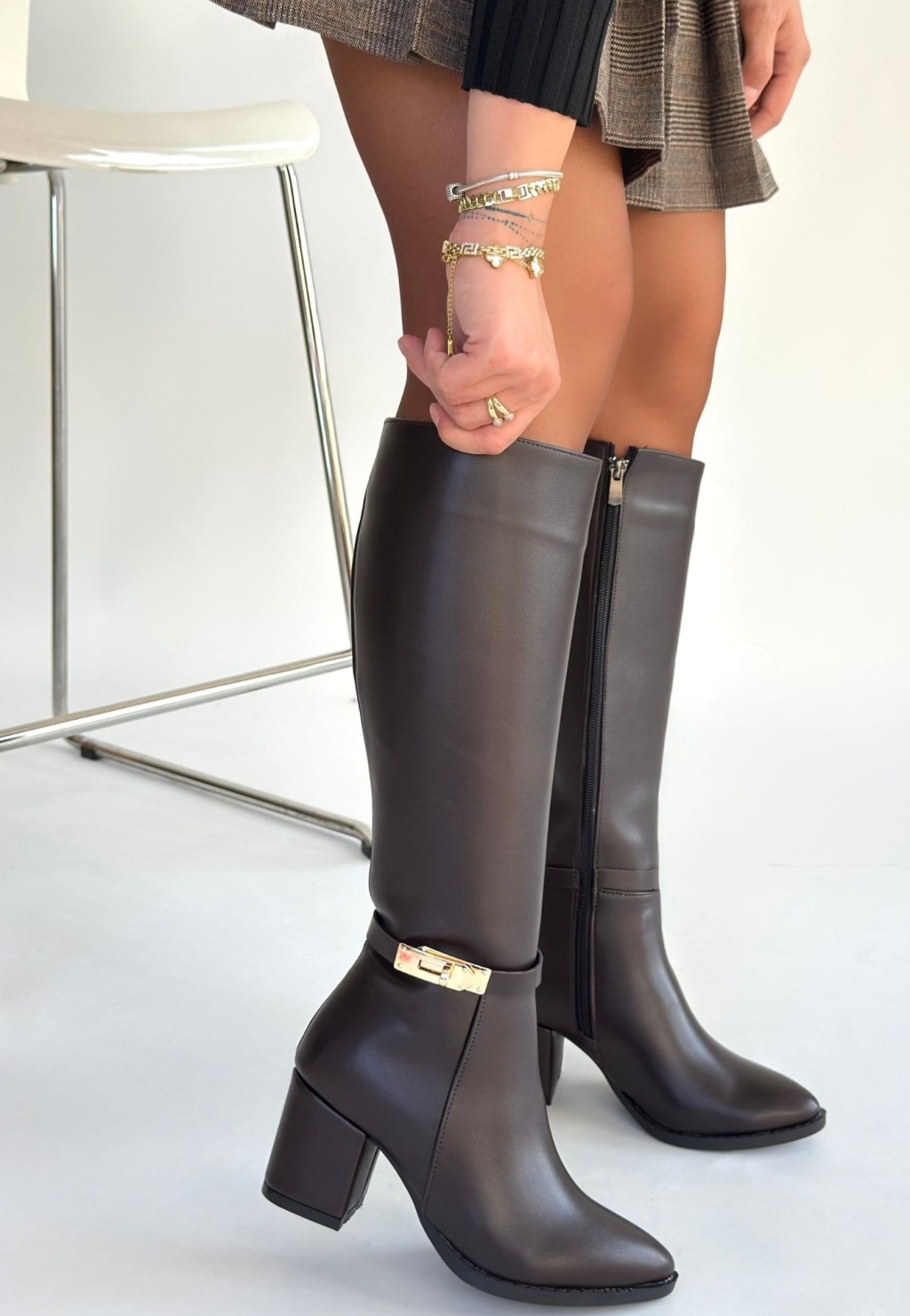 Jeoli Kahverengi Cilt Topuklu Çizme - Lisinya