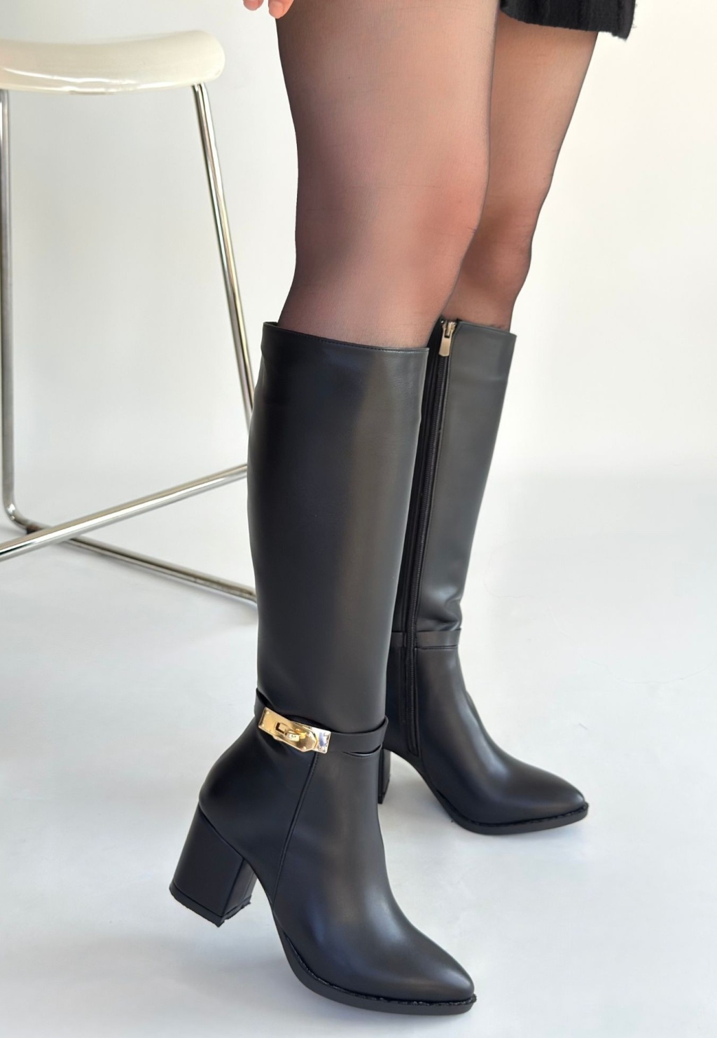 Jeoli Siyah Cilt Topuklu Çizme - Lisinya