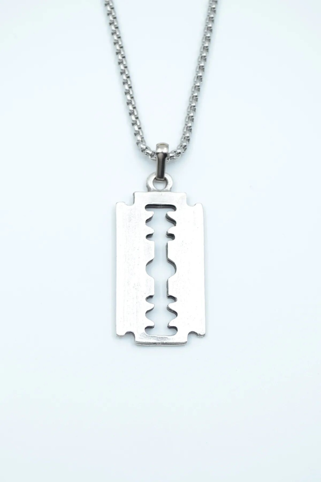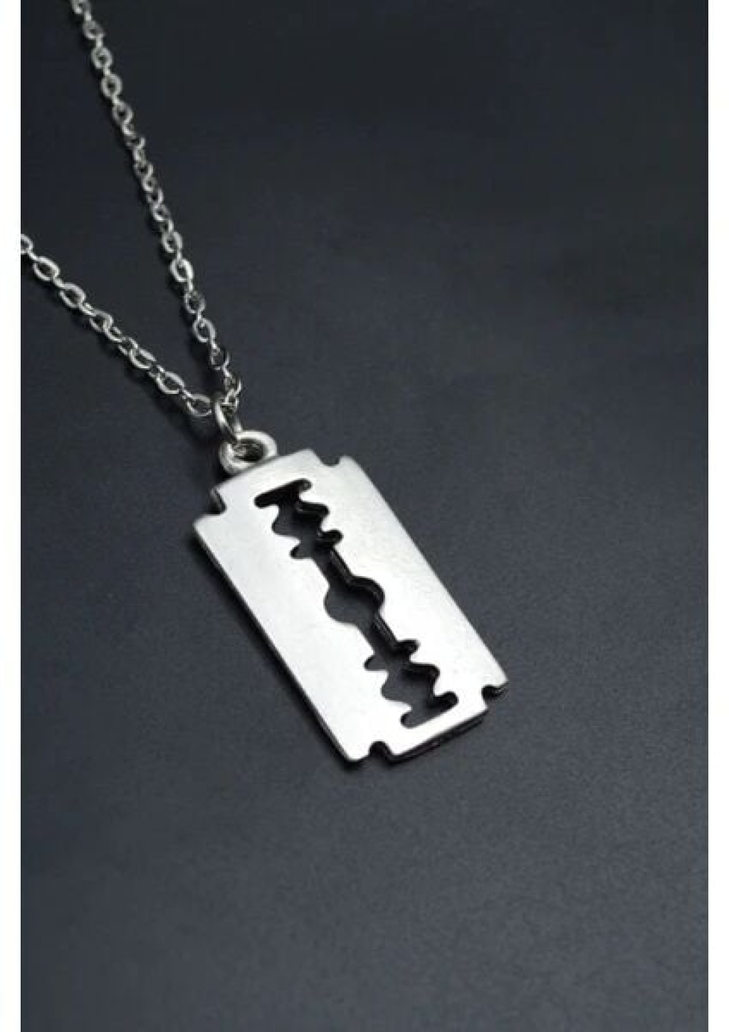 Jilet Çelik Kolye - Jilet Model Paslanmaz Gümüş Renk Çelik Kolye -