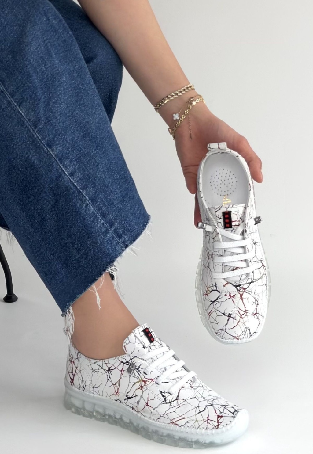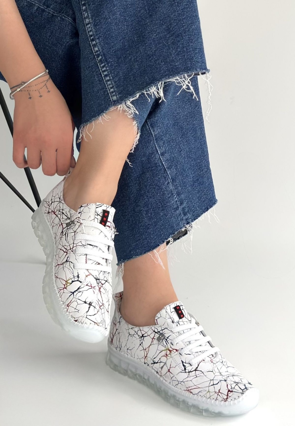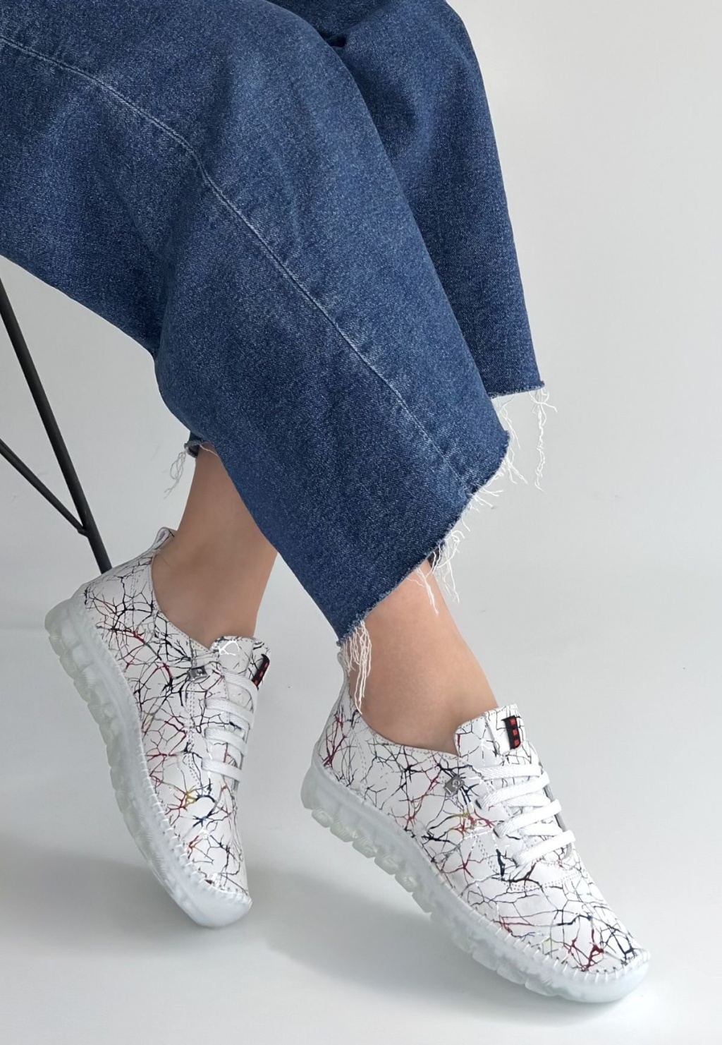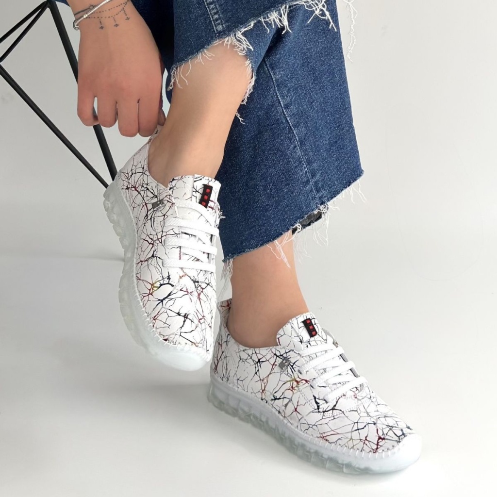 Jiten Beyaz Desenli Deri Bağcıklı Spor Ayakkabı -