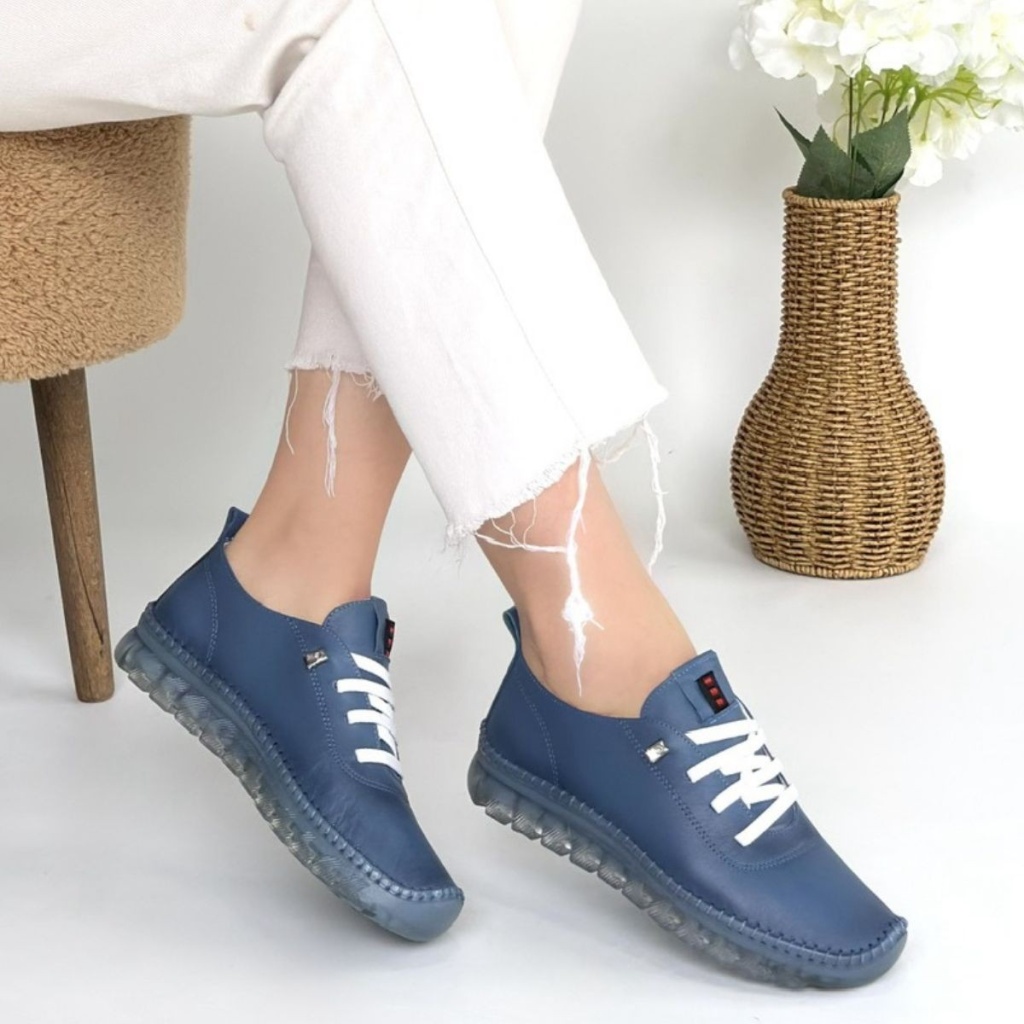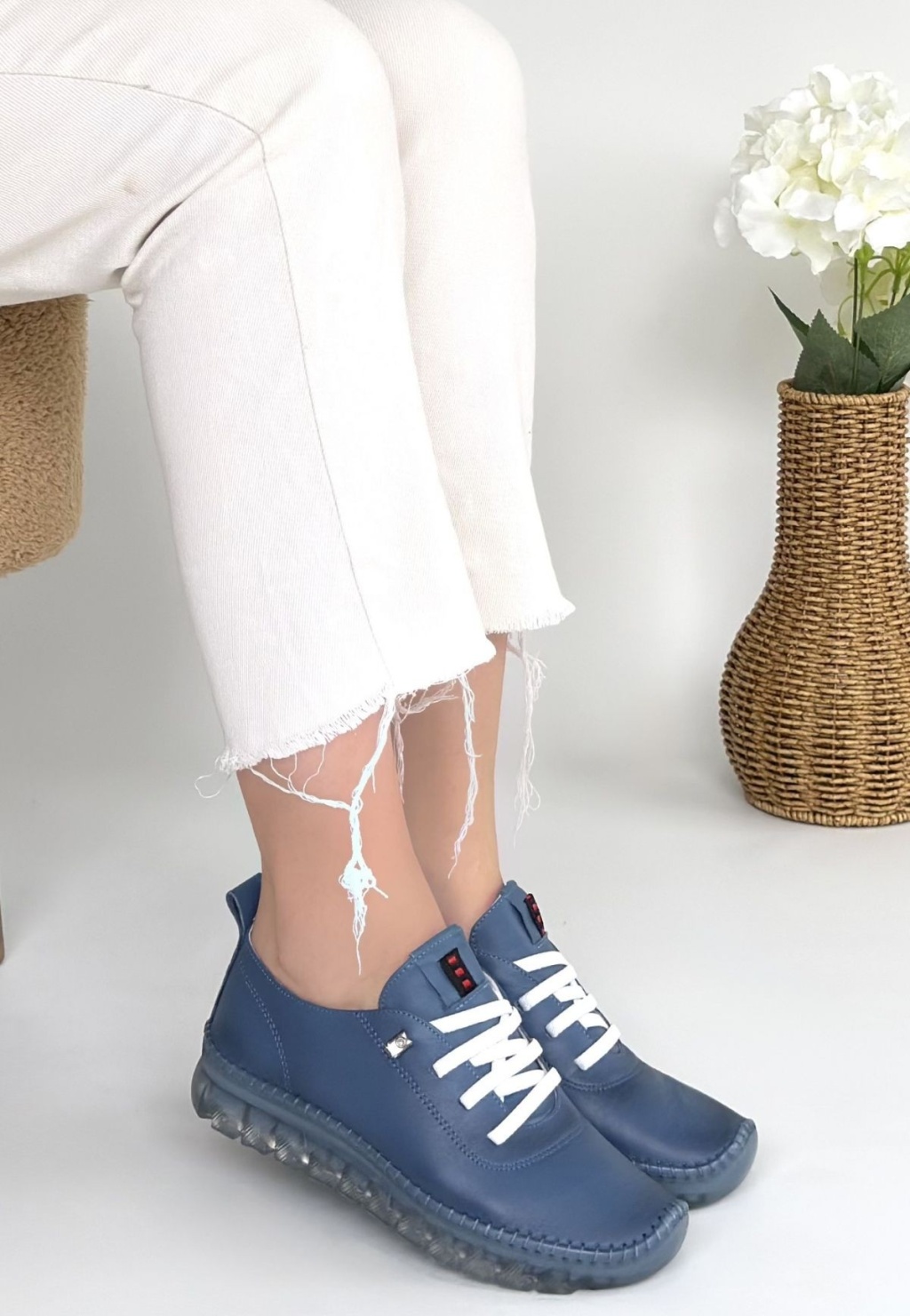 Jiten Mavi Deri Bağcıklı Spor Ayakkabı -