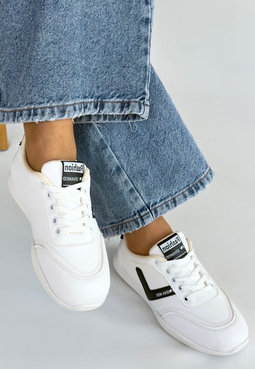 Jowen Beyaz Cilt Siyah Detaylı Bağcıklı Spor Ayakkabı -