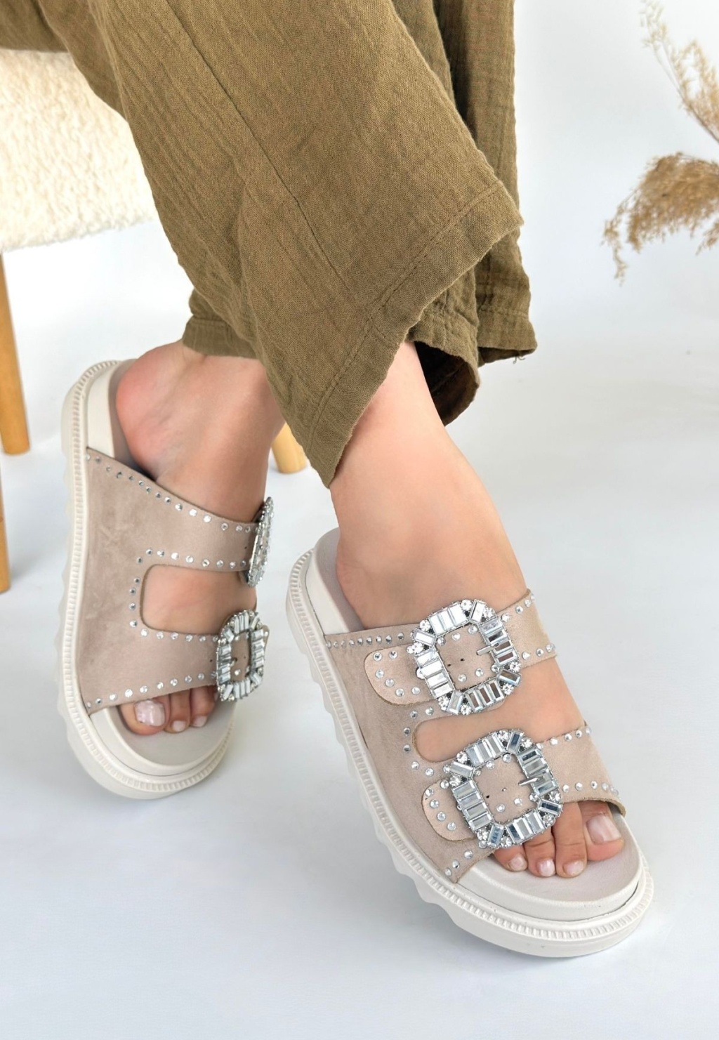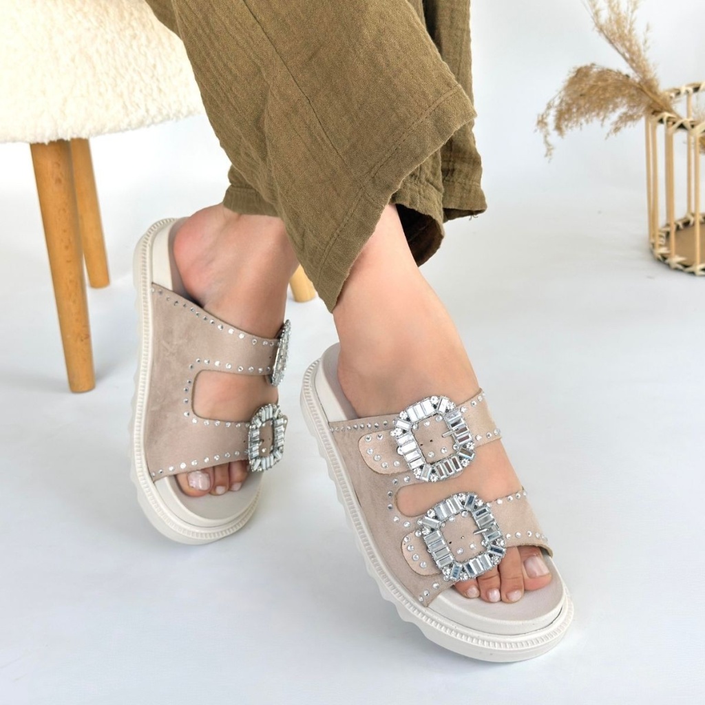 Juana Bej Nubuk Taşlı Terlik -