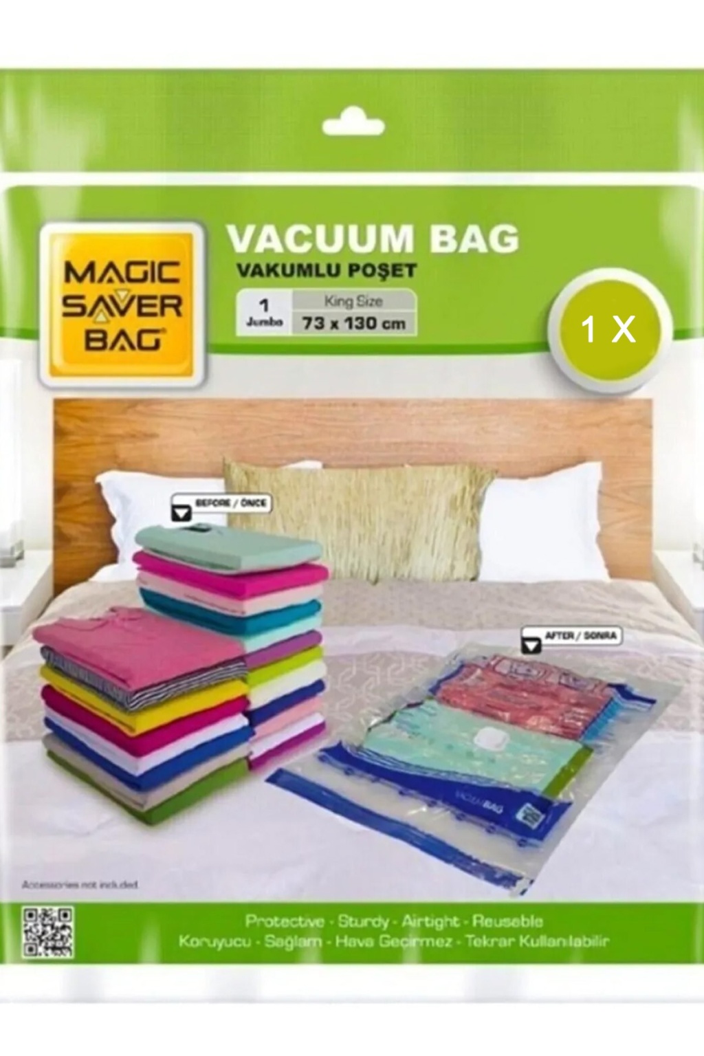 | Uzunca bir süre ihtiyaç duyulmayacak ve dolayısı ile ortalıkta olmaması gereken birçok eşyanız kolaylıkla ortalığın dağılmasına yol açabilir Yorgan, battaniye, kazak vb mevsimsel eşyalarınızın depolanması söz konusu olduğunda yer tasarrufu sağlayan poşetlerinizi kullanarak bu ürünler için ihtiyacınız olan depolama alanlarını azaltabilirsiniz. YER AÇAR Yerden tasarruf sağlayan saklama torbaları ile kolayca evinizdeki depolama alanlarını en aza indirebilirsiniz. Poşetlerimiz battaniyeler veya giysileriniz gibi eşyaların içine konulmasının ardından vakumla havayı almanızı ve poşetin içindeki eşyaların hacmini azaltmanızı sağlar. Poşet içinde saklanılacak eşyaların boyutlarına bağlı olarak, eşyalarınızın hacmi %75'e kadar azaltılabilir. Paket İçeriği 1 Adet 73 cm x 130 cm vakumlu hurç |