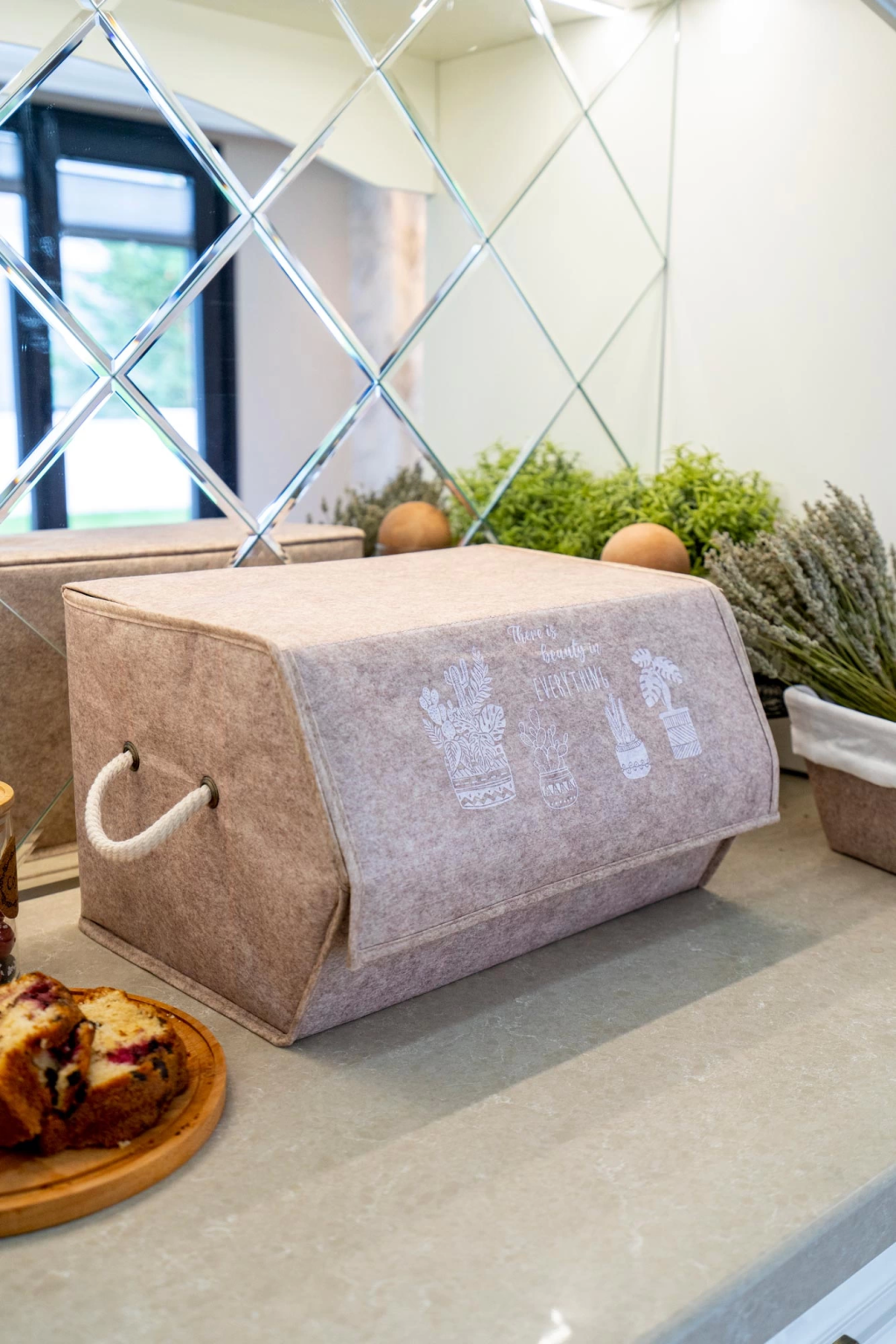 Köşeli Kapaklı Düzenleyici Çok Amaçlı Kolay Taşınabilen Organizer Keçe Kutu-Evinizin herhangi bir köşesinde oturtamadığınız düzenleriniz için biz size pratik bir çözüm getiriyoruz.-İstediğiniz her alanda pratik depolama çözümü sunan Keçe Çok Amaçlı Düzenleyici derli toplu bir ortam için vazgeçilmez bir düzenleyici.-Yerden tasarruf etmenize yardımcı olurken, bir yerden başka bir yere taşımayı kolaylaştıran yapıya sahiptir.-Hareket katarak şık görünüm sunuyor.-Silinerek temizlenmesi önerilmektedir.-Evdeki her türlü eşyanın düzenli bir şekilde muhafaza edilmesini sağlar-Dekoratif ve uzun ömürlüdür-38x28x24 cm-Çok amaçlı çeyiz kutusu olarak da kullanılabilir. Polietilen keçe kumaştan üretilmiştir. Evinizin her alanında, oyuncak, kıyafet ve özel eşyalarınızı düzenlemek amacıyla kullanabilirsiniz. Kullanmadığınız takdirde kolayca katlayıp saklayabilirsiniz, katlanılabilir özelliği sayesinde yerden tasarruf sağlar. Karton desteği dik durmasını sağlar, Halatlı kulpları ile kolay taşınabilir. cırt kapaklı, dekoratif desen yazı tasarımı ile alanlarınıza şıklık katacaktır. Geniş hacmi sayesinde eşyalarınızı, kıyafetlerinizi kolayca düzenlemenize, saklamanıza yardımcı olur. Uzun saklama koşullarında eşyalarınız sararmaz, rutubetten korunur. Çok amaçlı çeyiz kutusu olarak da kullanılabilir. Ağartıcı kullanmamanız, nemli bir bez ile silmeniz tavsiye edilir. Stoklara göre renkler farklılık gösterbilir. Ürün Markası: Lisinya