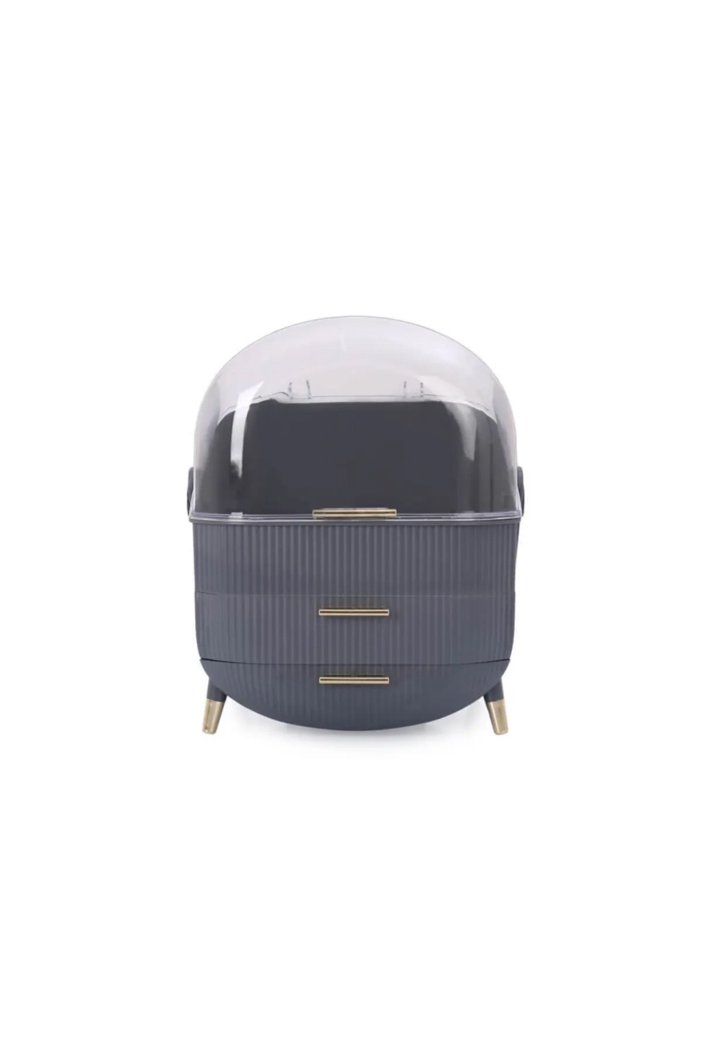 | Çekmeceli Çok Amaçlı Makyaj Kozmetik Düzenleyici Büyük Tasarım Organizer, Ürün Ölçüleri: 14 x 26 cm, yükseklik 34 cm, Düzen, hayatımızın her noktasında çok önemlidir. Evimizde, düzen sağlamak için de organizerlere ihtiyaç duyarız. Bu organizerlerin, ev dekorasyonumuzla ve mobilyalarımızla uyumlu olması, şıklık açısından da çok önemlidir. Çekmeceli Makyaj Kozmetik Düzenleyici Organizer, düzen sağlamasının yanı sıra göz alıcı şık ve dekoratif tasarımıyla odanıza, banyonuza kısacası kullanıldığı her alana ayrı bir hava ve güzellik katar. Taşınabilir askı aparatı sayesinde, kullanmak istediğiniz yere kolayca taşınabilir. Üst kısmında bulunan şeffaf kapağı sayesinde ürünlerini korurken hangi ürünlerinizi koyduğunuzu görebilme imkânına sahip olursunuz. Çekmeceli tasarım ile birçok farklı ürün grubunu düzenli bir şekilde muhafaza edebilirsiniz. İster masanızın üzerinde, ister dolabınızın üzerinde, isterseniz de zeminde kullanıma uygundur |