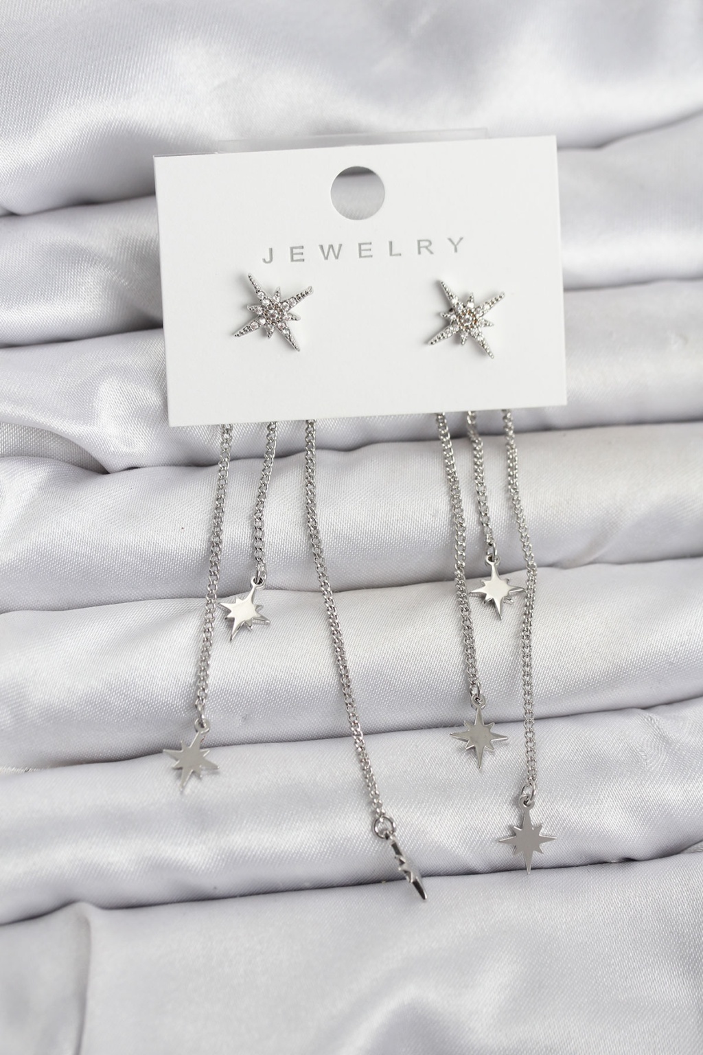 Kutup Yıldızı Model Gümüş Renk Pirinç Sallantılı Kadın Küpe -