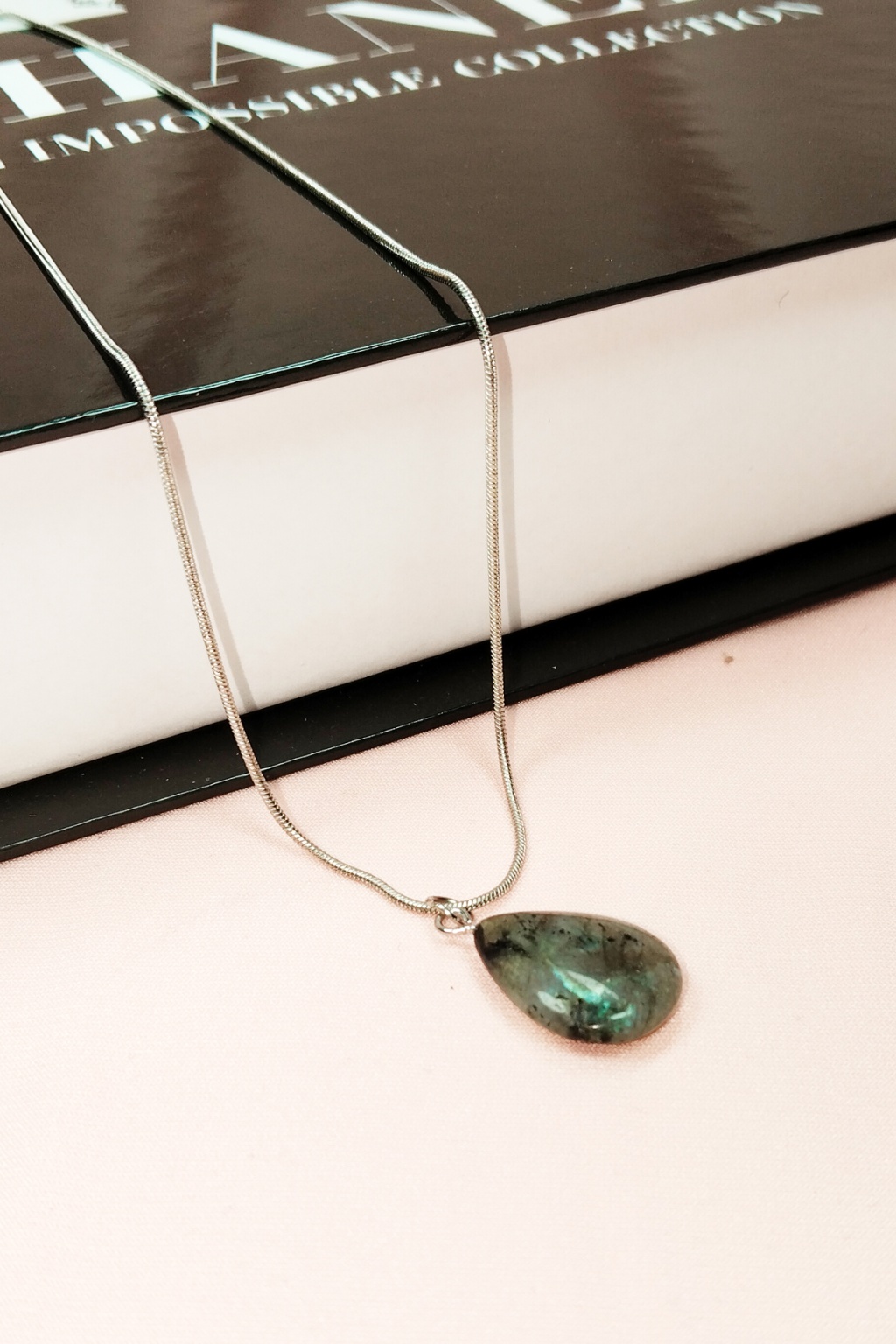 Labradorit Doğal Taşı Zincirli El Yapımı Kolye Uç: 2 cm Zincir: 20 cm Kutulu |