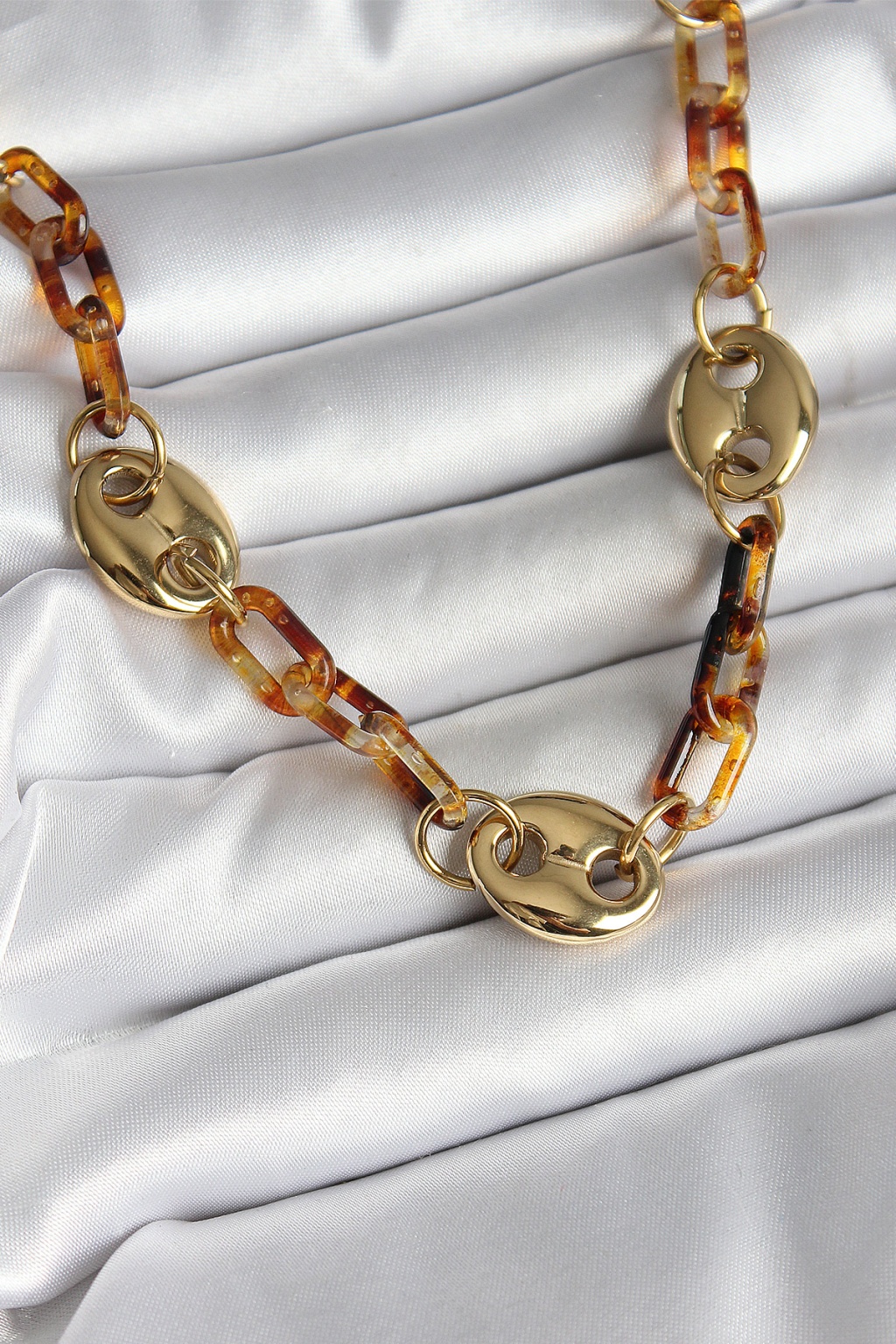 Leopar Desenli Mika Gold Renk Zincir Kadın Kolye - Lisinya