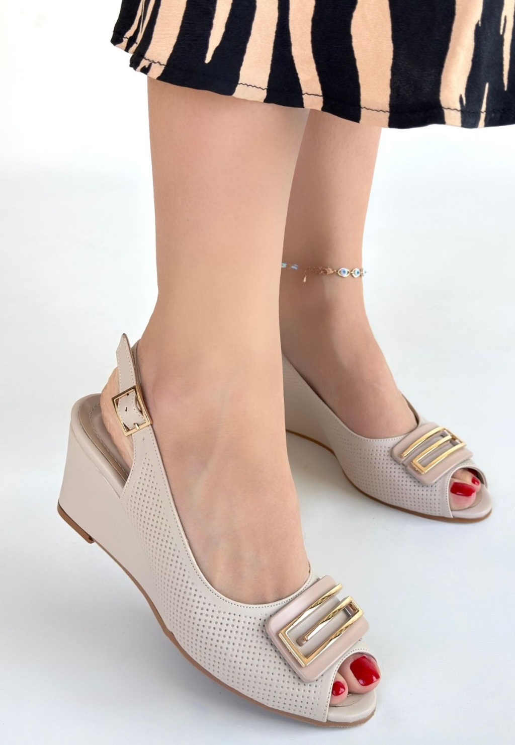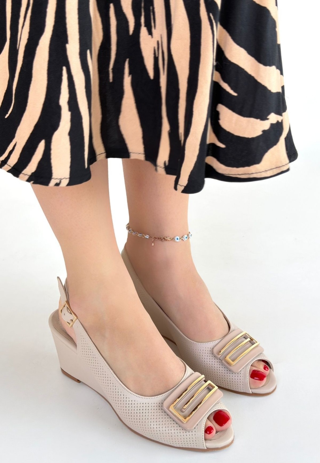 Mamba Bej Cilt Dolgu Topuk Ayakkabı -