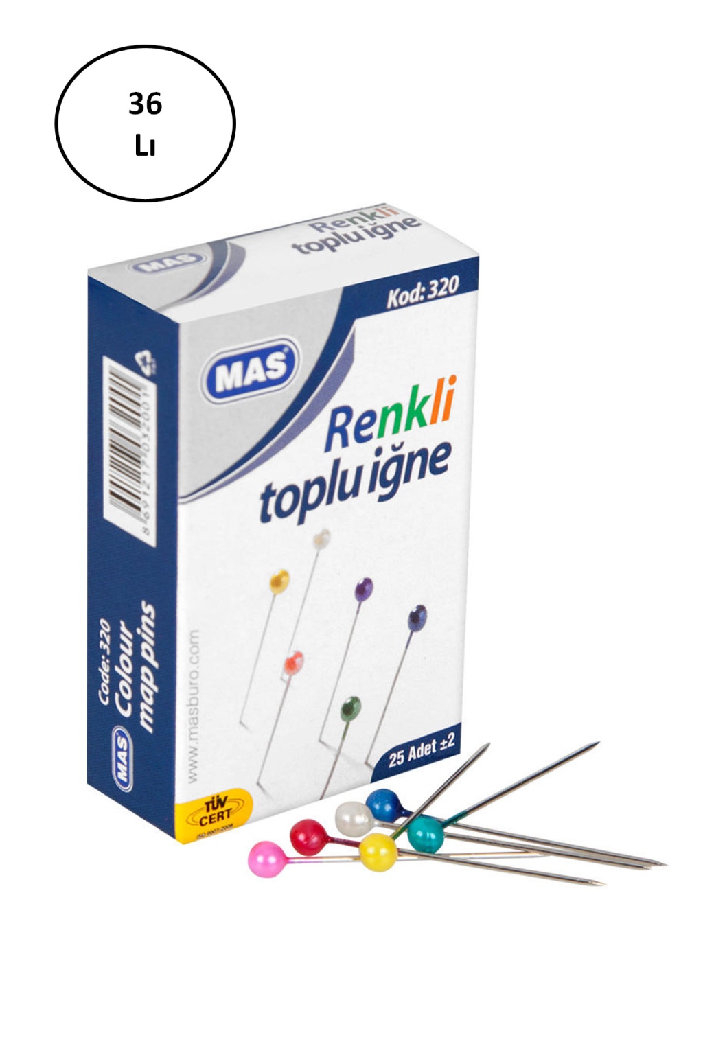 | Mas 320 Renki Başlı Toplu İğne 32 Mm 36'lı - Ürün Kodu : MAS.320 |