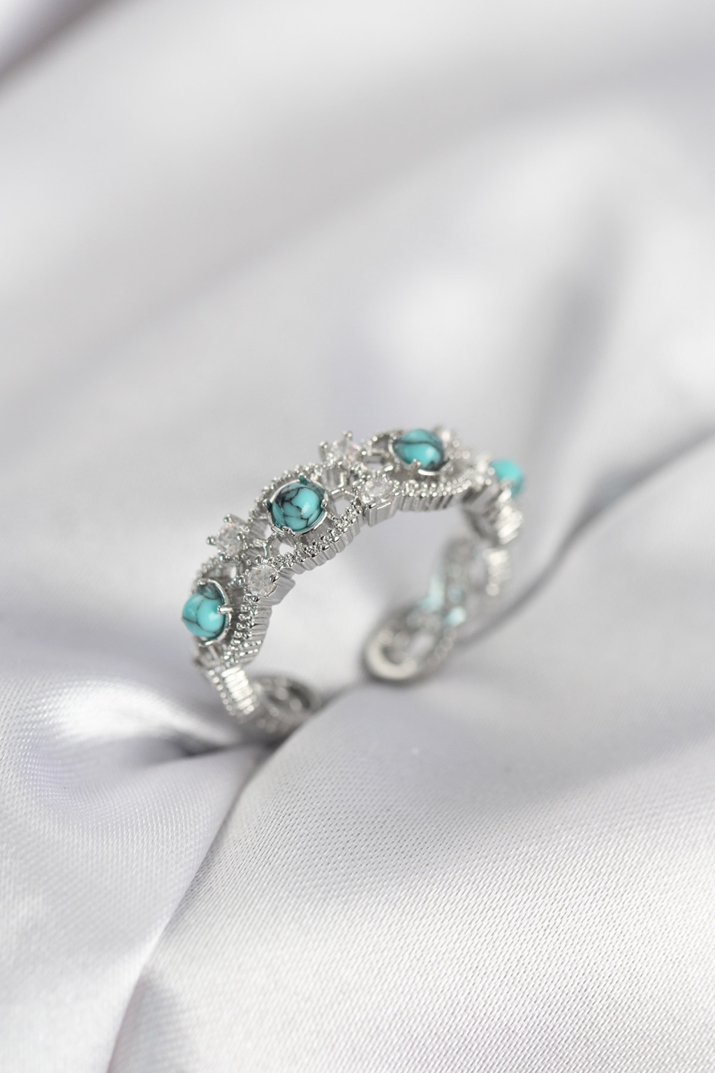 Mavi Taşlı Gümüş Renk Vintage Kadın Yüzük - Lisinya