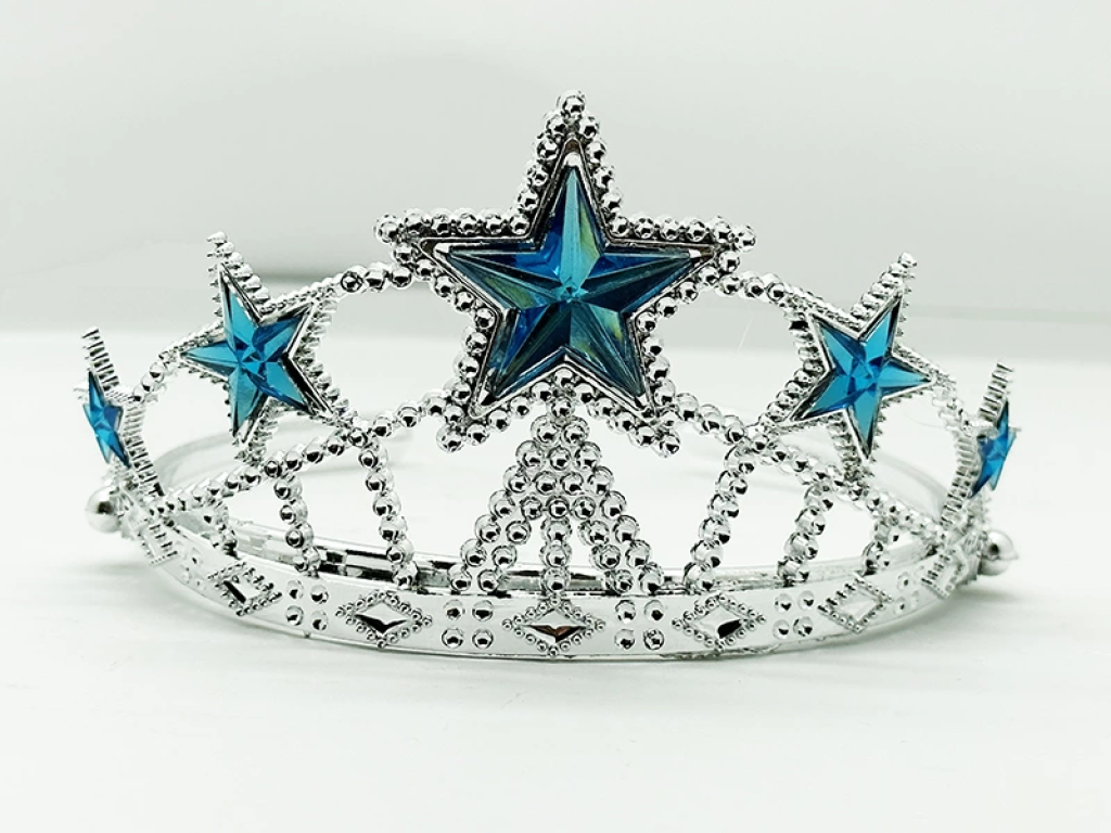 Mavi Yıldız Taşlı Plastik Kraliçe Prenses Elsa Tacı Çocuk Boy -