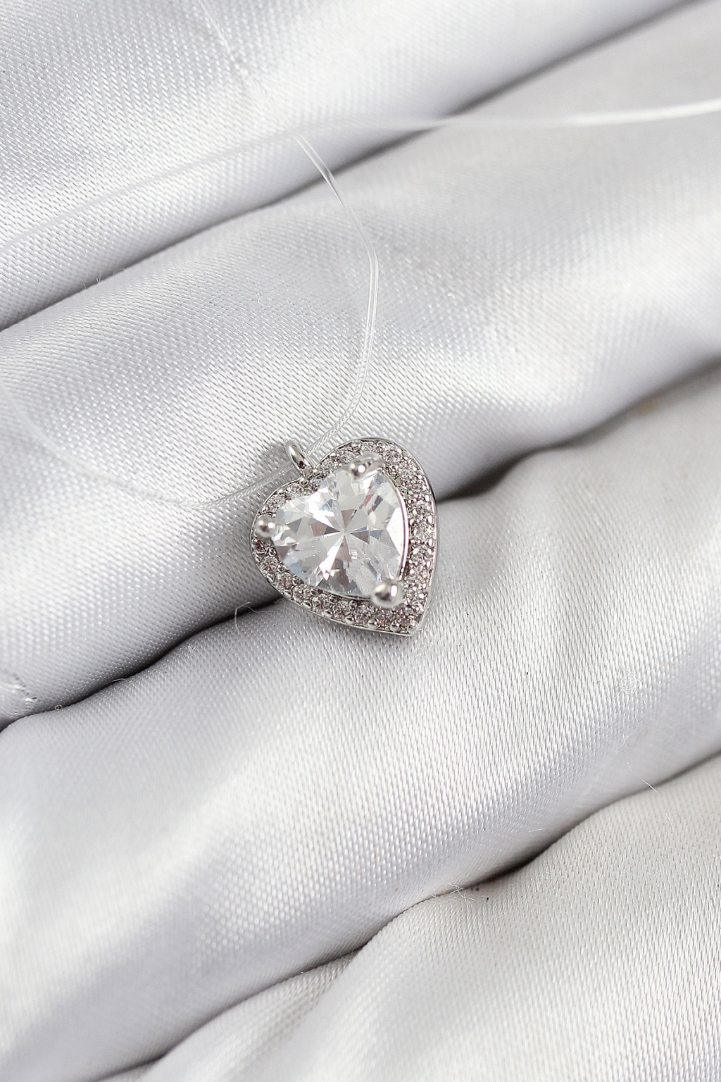 Misineli Kalp Model Gümüş Renk Hayalet Kolye -