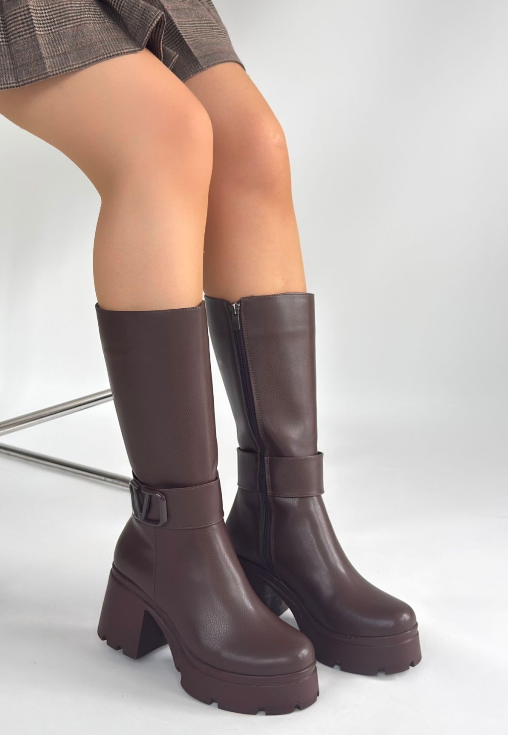 Moki Kahverengi Cilt Topuklu Çizme - Lisinya