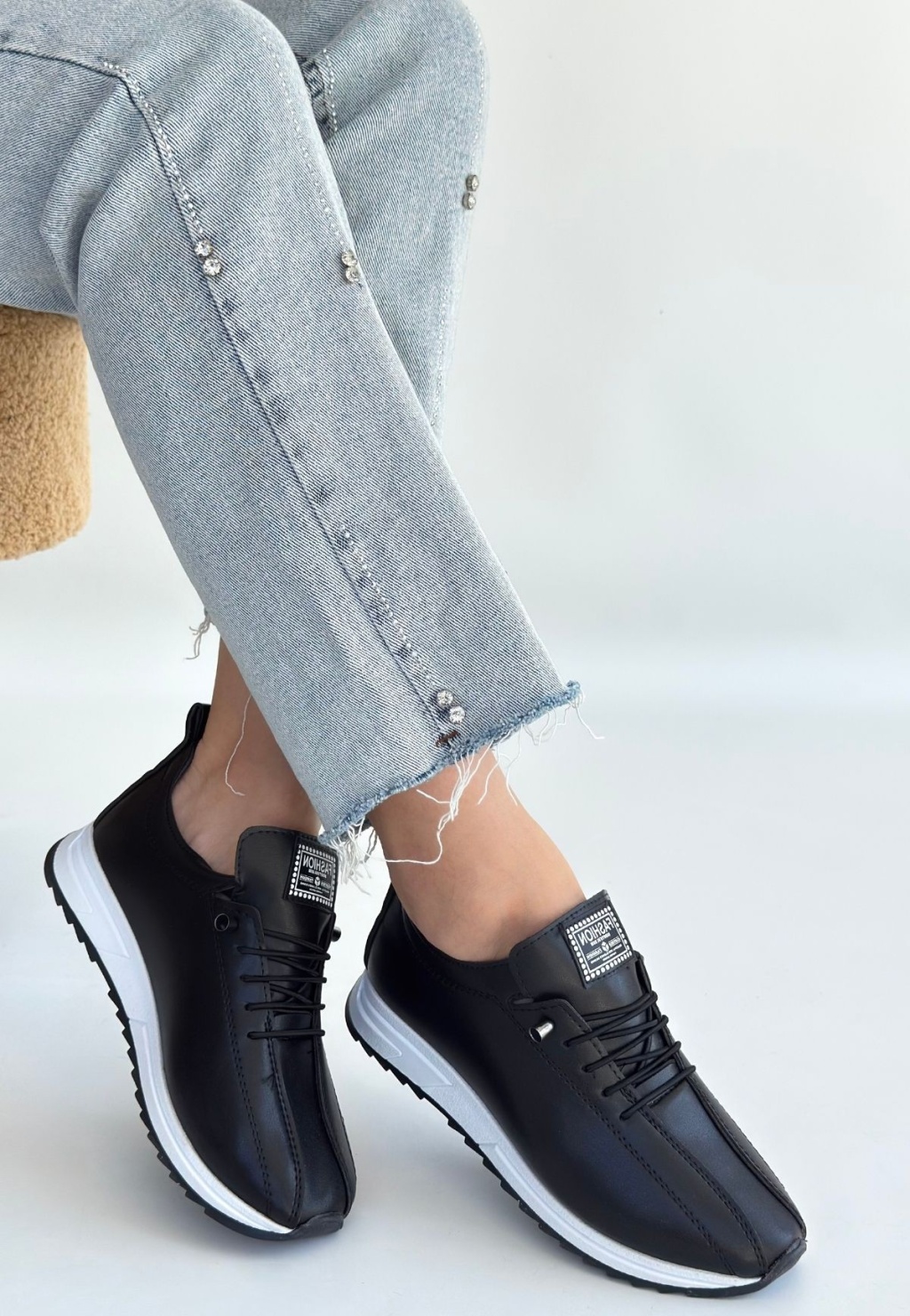 Monya Siyah Cilt Bağcıklı Spor Ayakkabı - Lisinya
