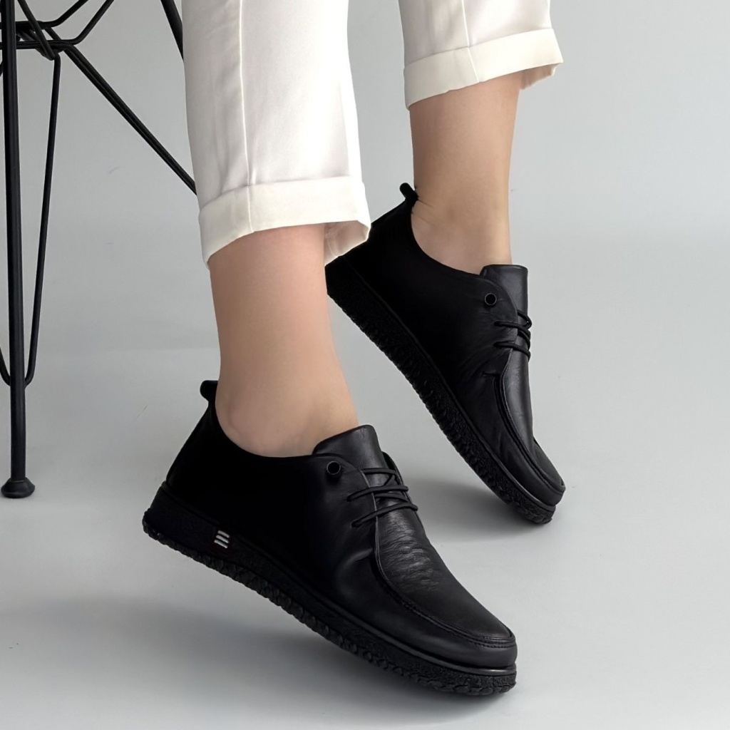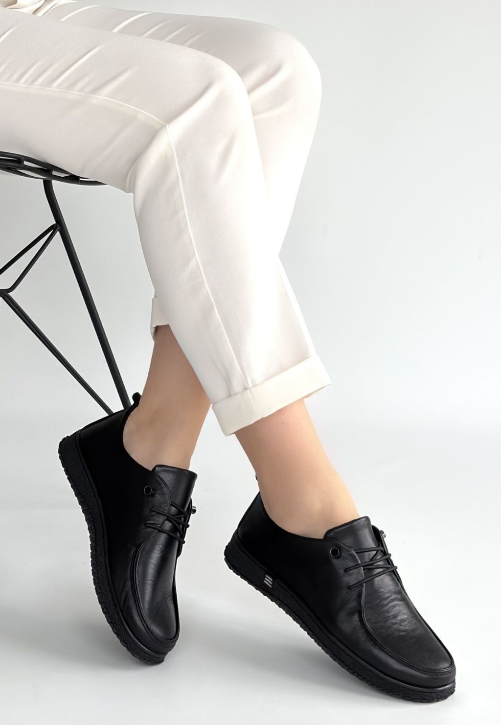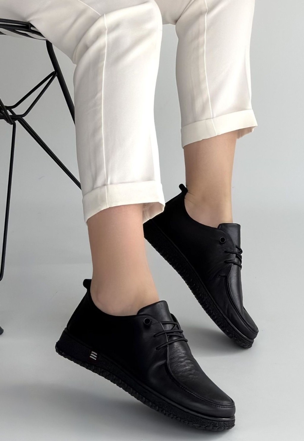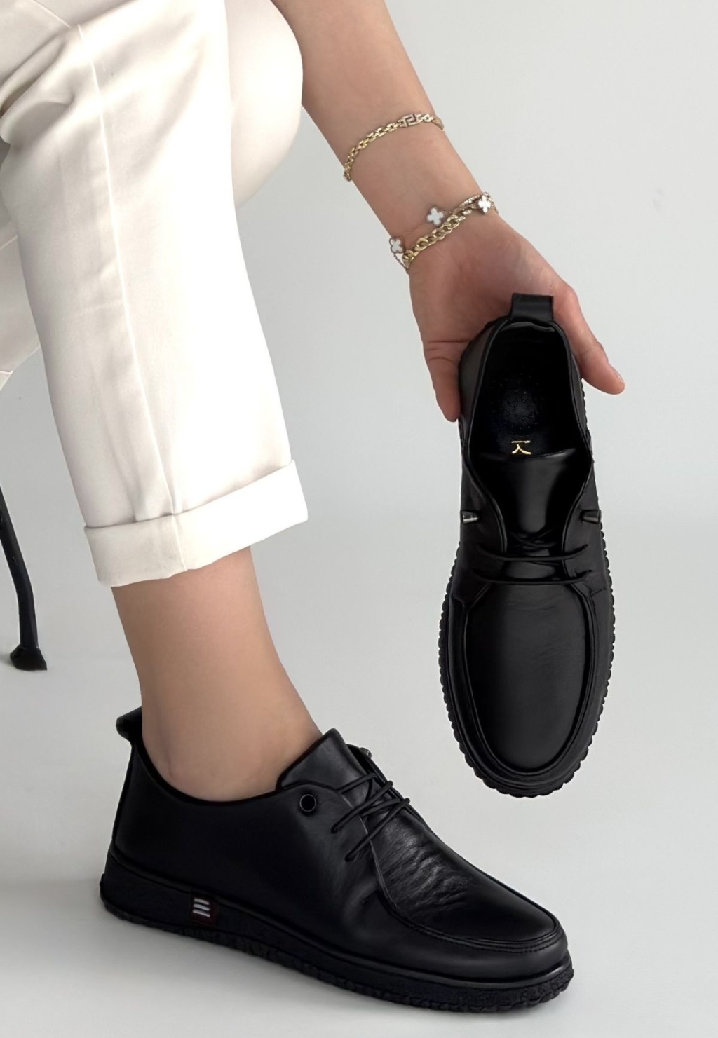 Mopin Siyah Deri Bağcıklı Spor Ayakkabı -