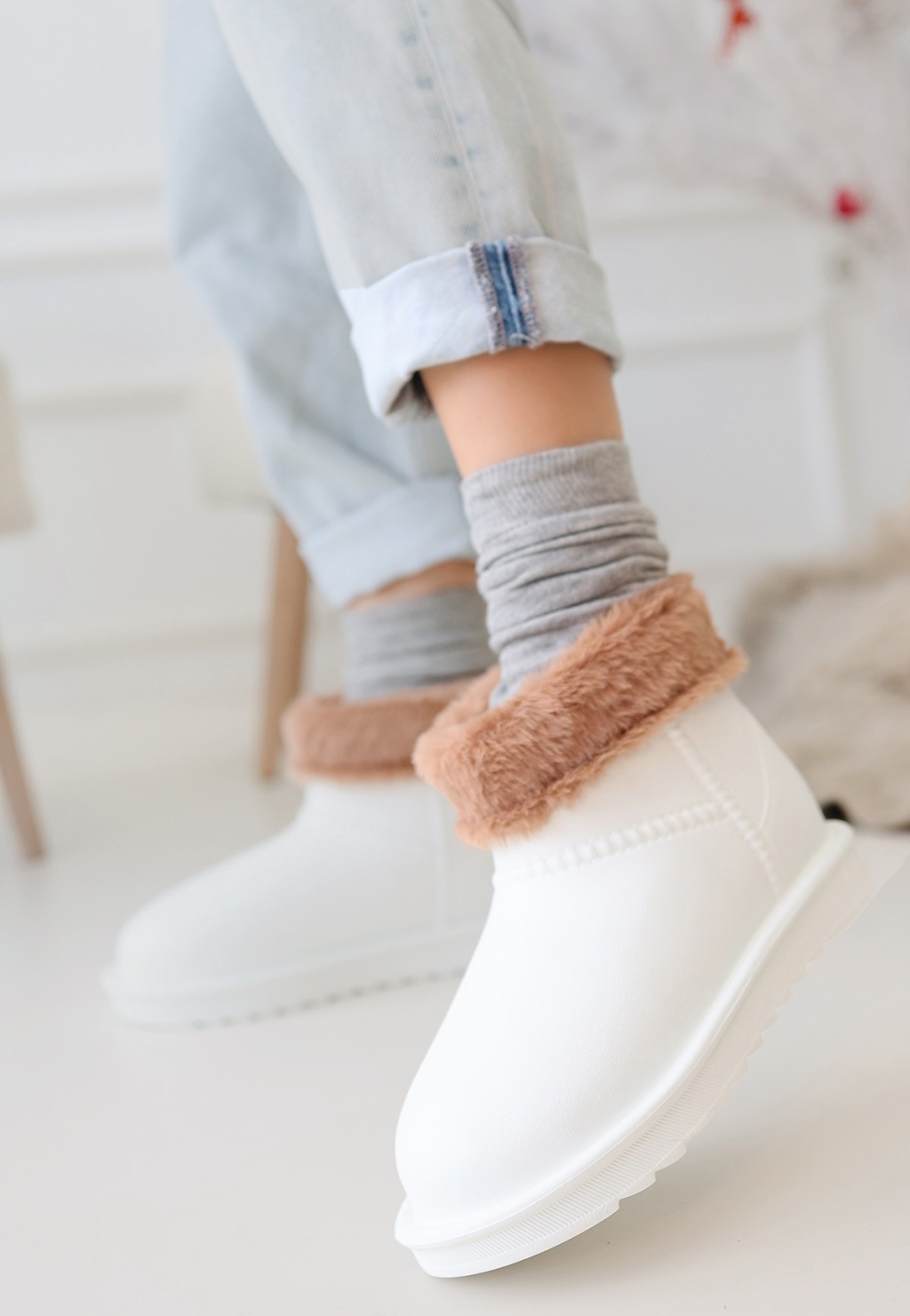 Mordi Beyaz Oval Burunlu Su Geçirmez İçi Kürklü Bot - Lisinya