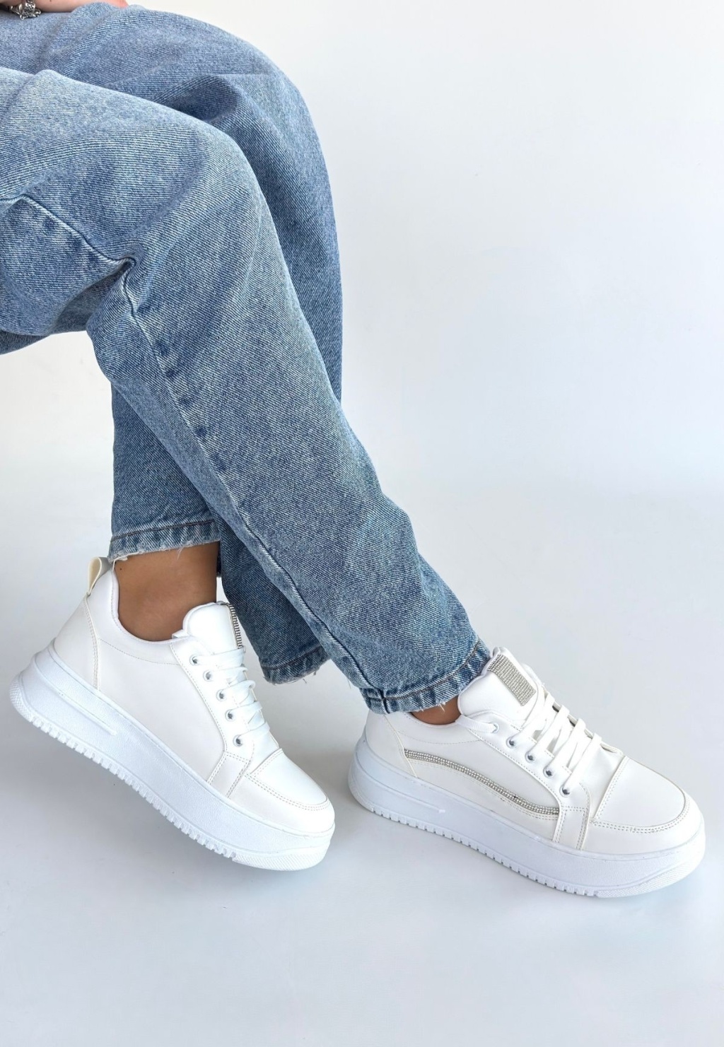 Natte Beyaz Cilt Bağcıklı Spor Ayakkabı -