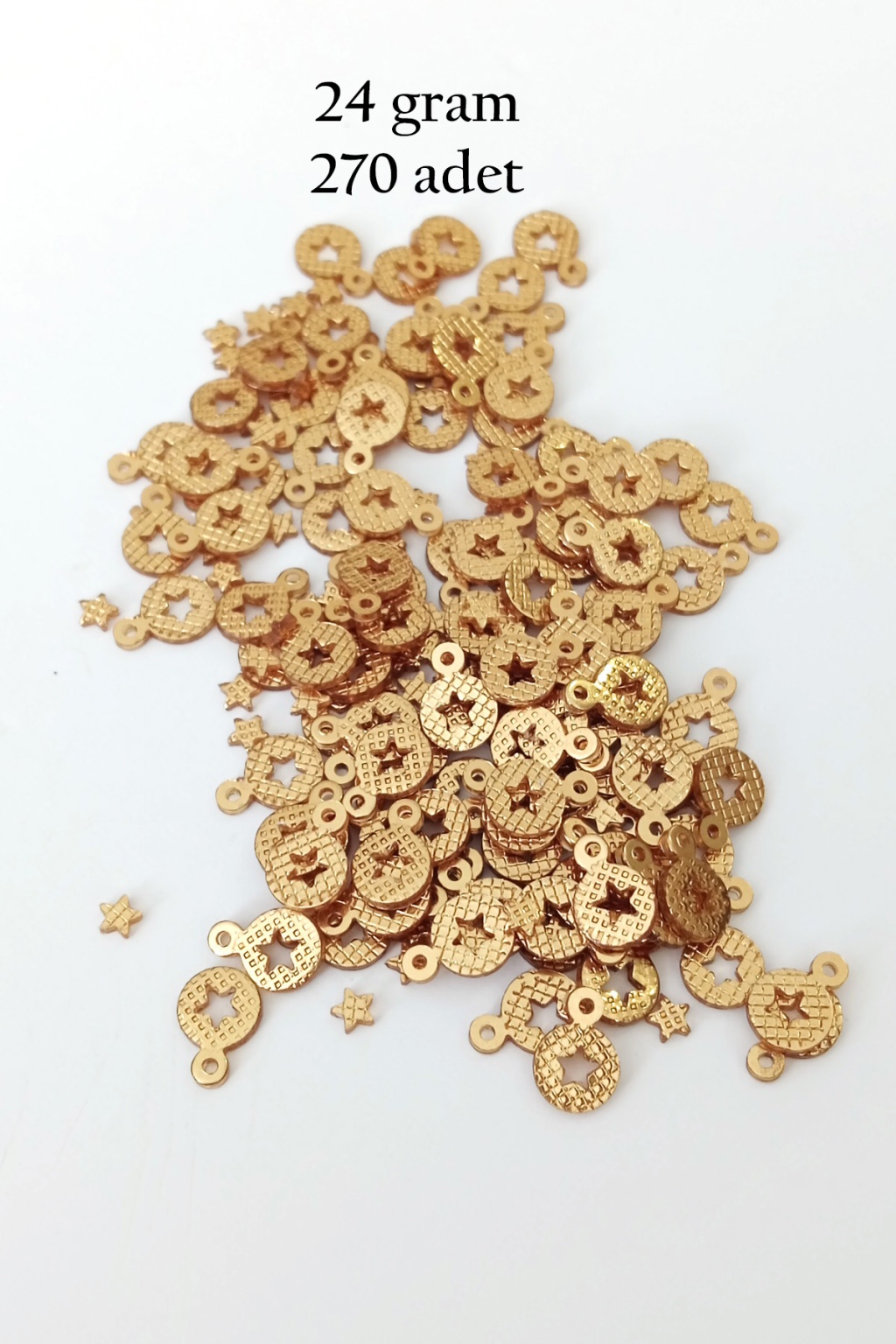 | Oya Abiye Bileklik Kolye Pleksi Metalik Plastik Pul Altın Renk 24 gram 270 adet - BNC537 |