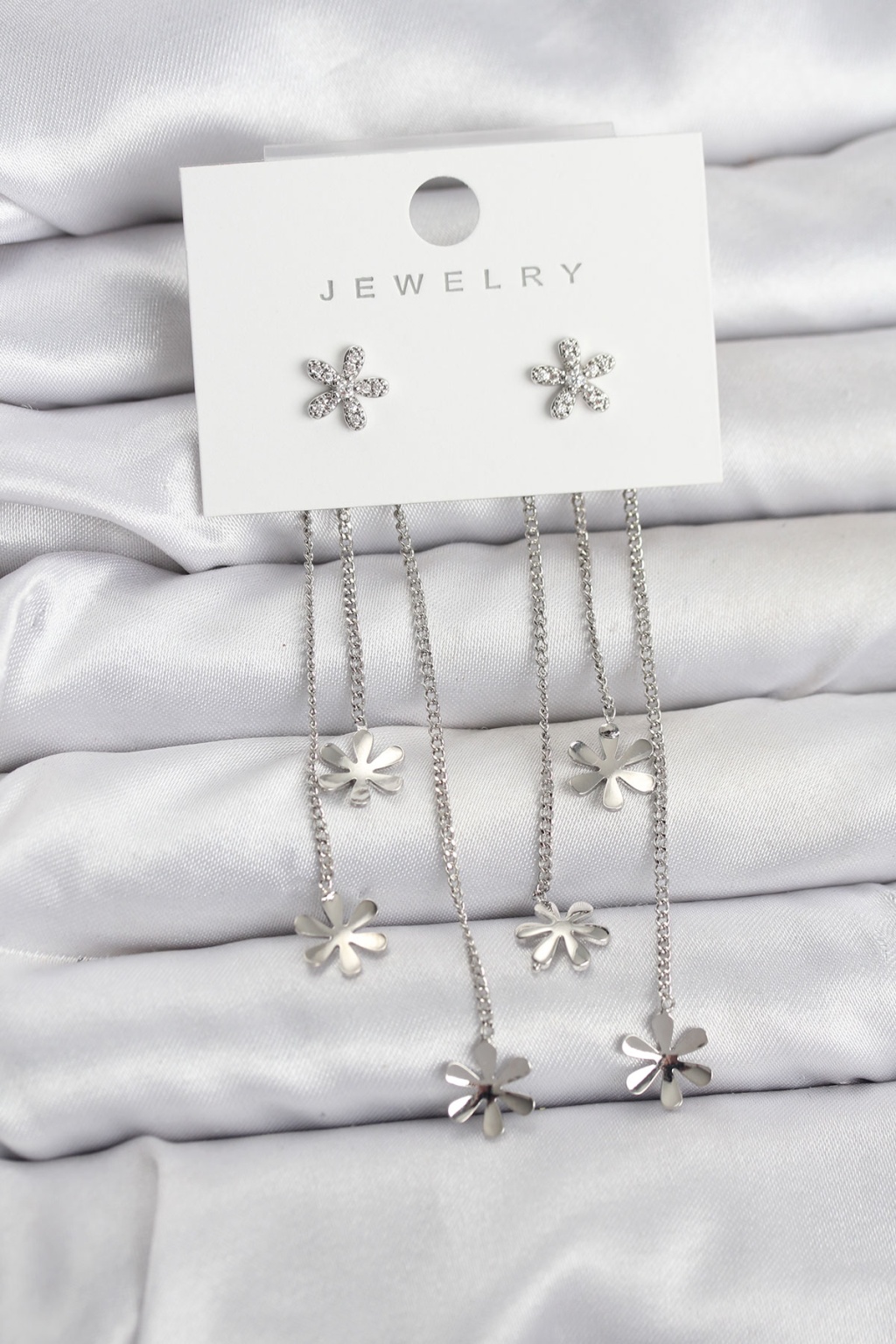 Papatya Model Gümüş Renk Pirinç Sallantılı Kadın Küpe -