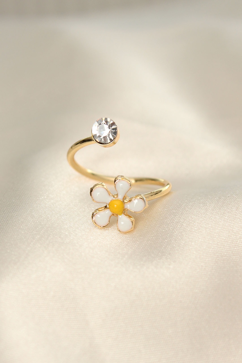 Papatya Tasarımlı Zirkon Taşlı Ayarlanabilir Yüzük -