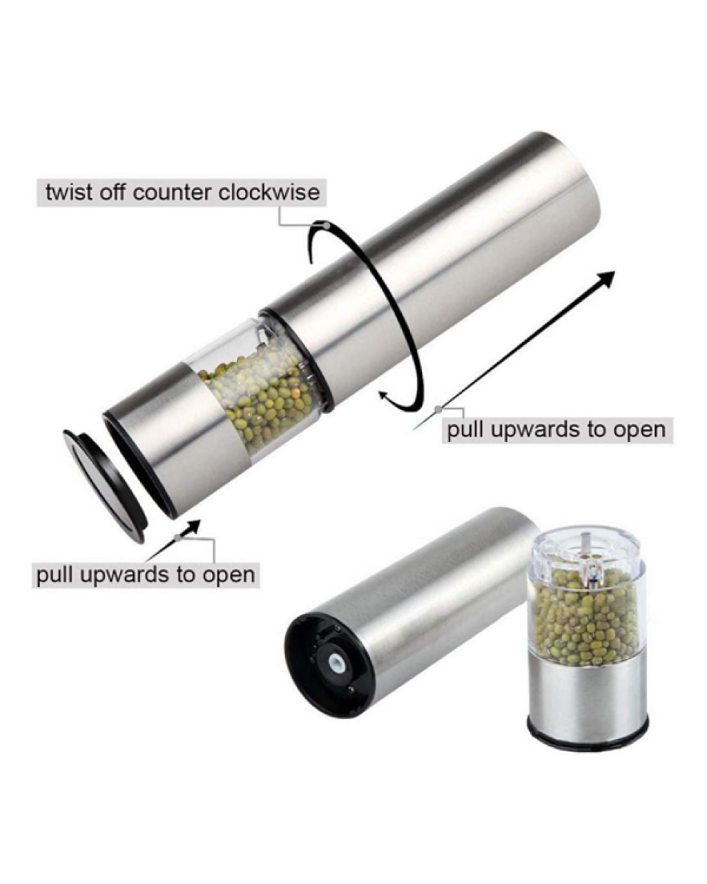 Pilli Otomatik Baharat Değirmeni Gıda Sınıfı Çelik Sessiz Öğütücü Alet -