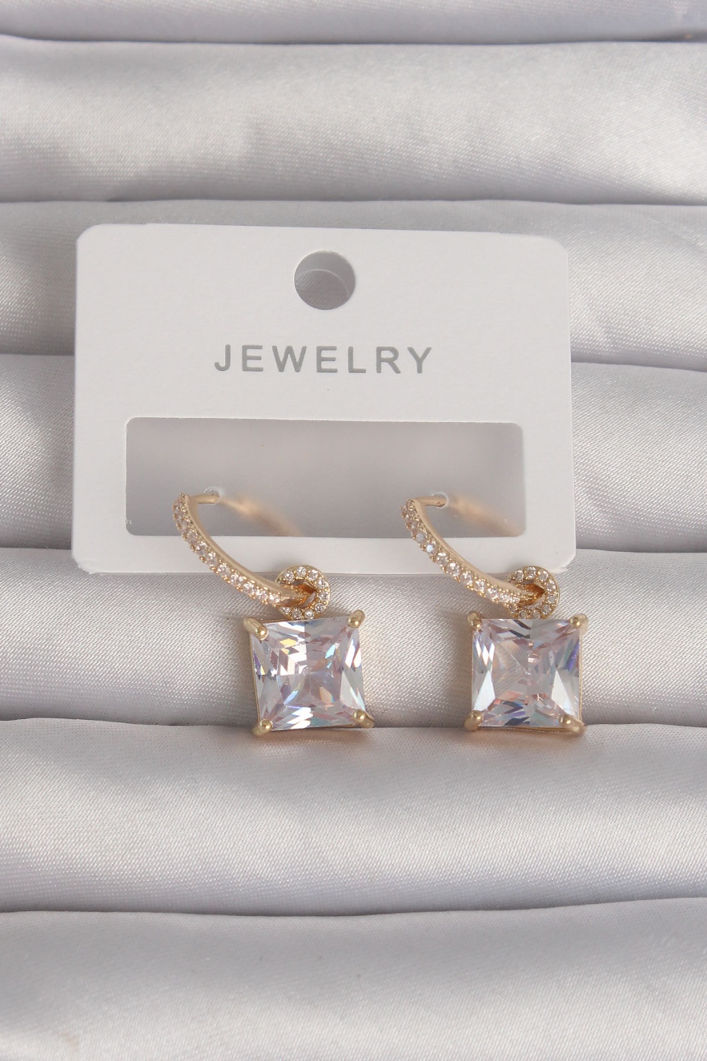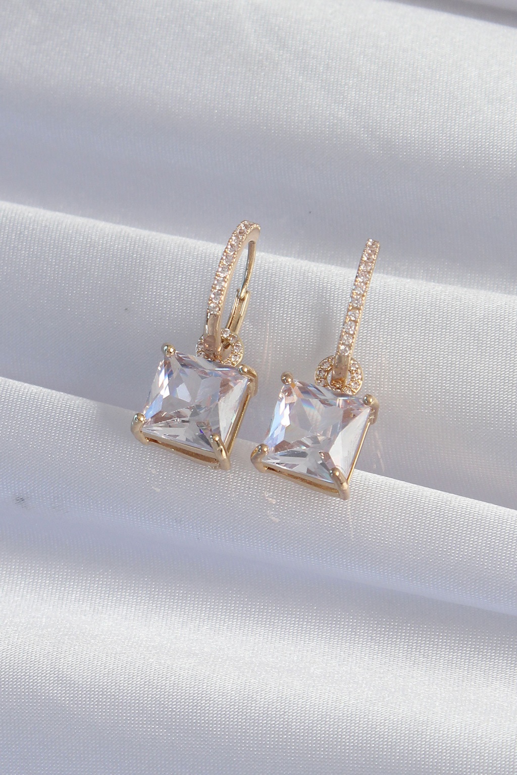 Pirinç Gold Renk Kare Zirkon Taşlı Halka Küpe - Lisinya