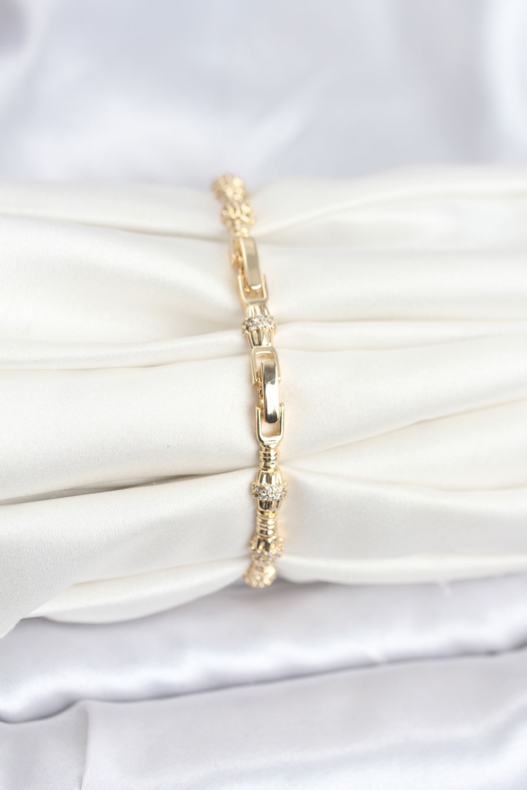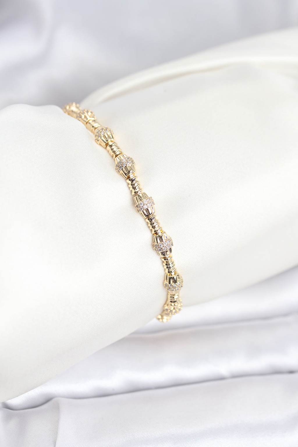 Pirinç Gold Renk VIP Seri Punta Model Zirkon Taşlı Kadın Bileklik - Lisinya