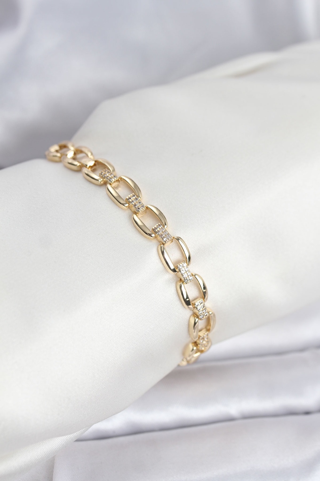 Pirinç Gold Renk VIP Seri Zincir Model Zirkon Taşlı Kadın Bileklik - Lisinya