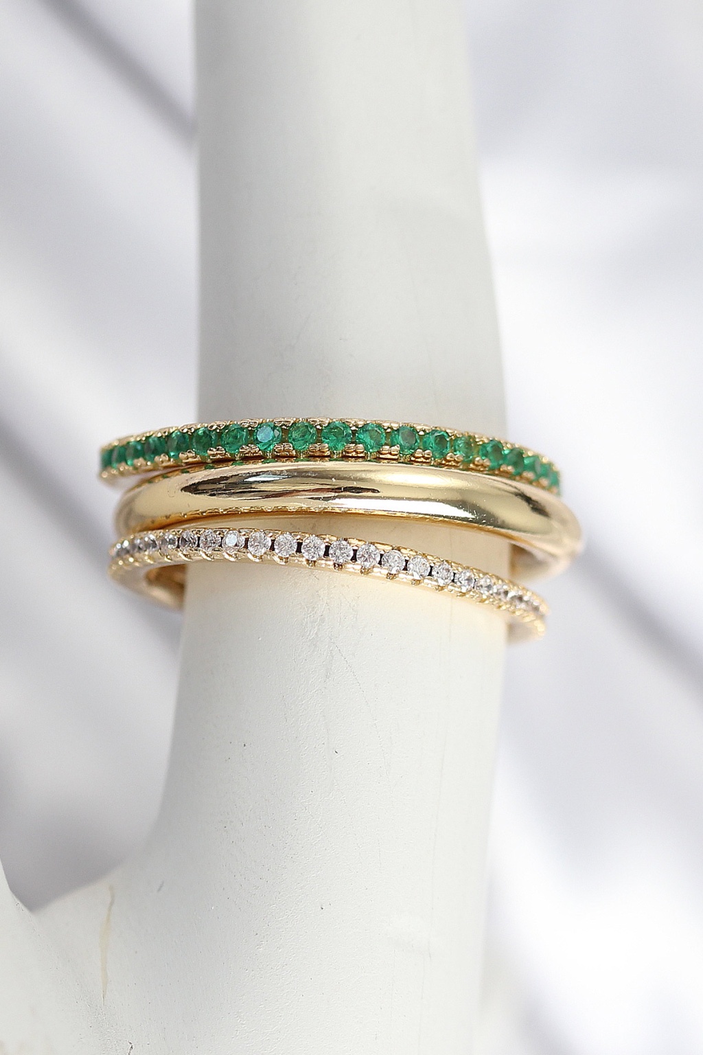Pirinç Gold Renk Zirkon Taşlı 4'Lü Kadın Yüzük -