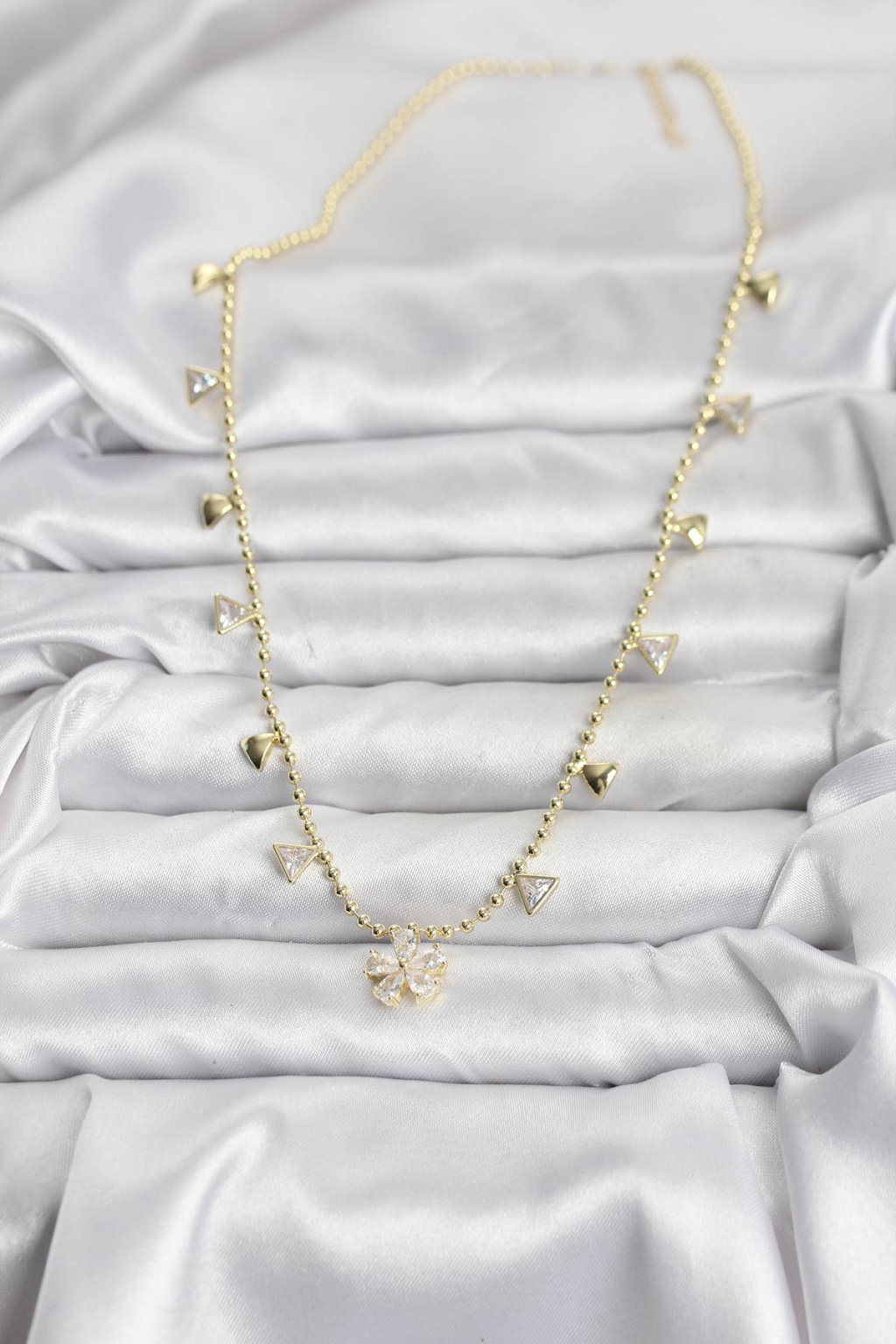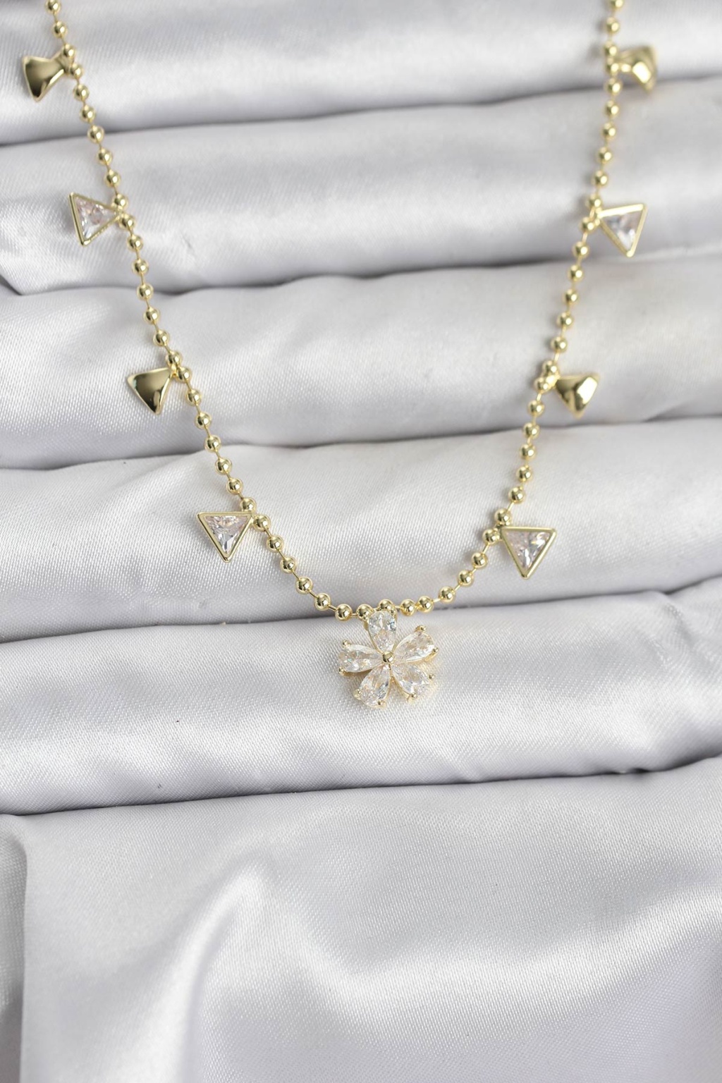 Pirinç Gold Renk Zirkon Taşlı Çiçek Model Kadın Kolye - Lisinya