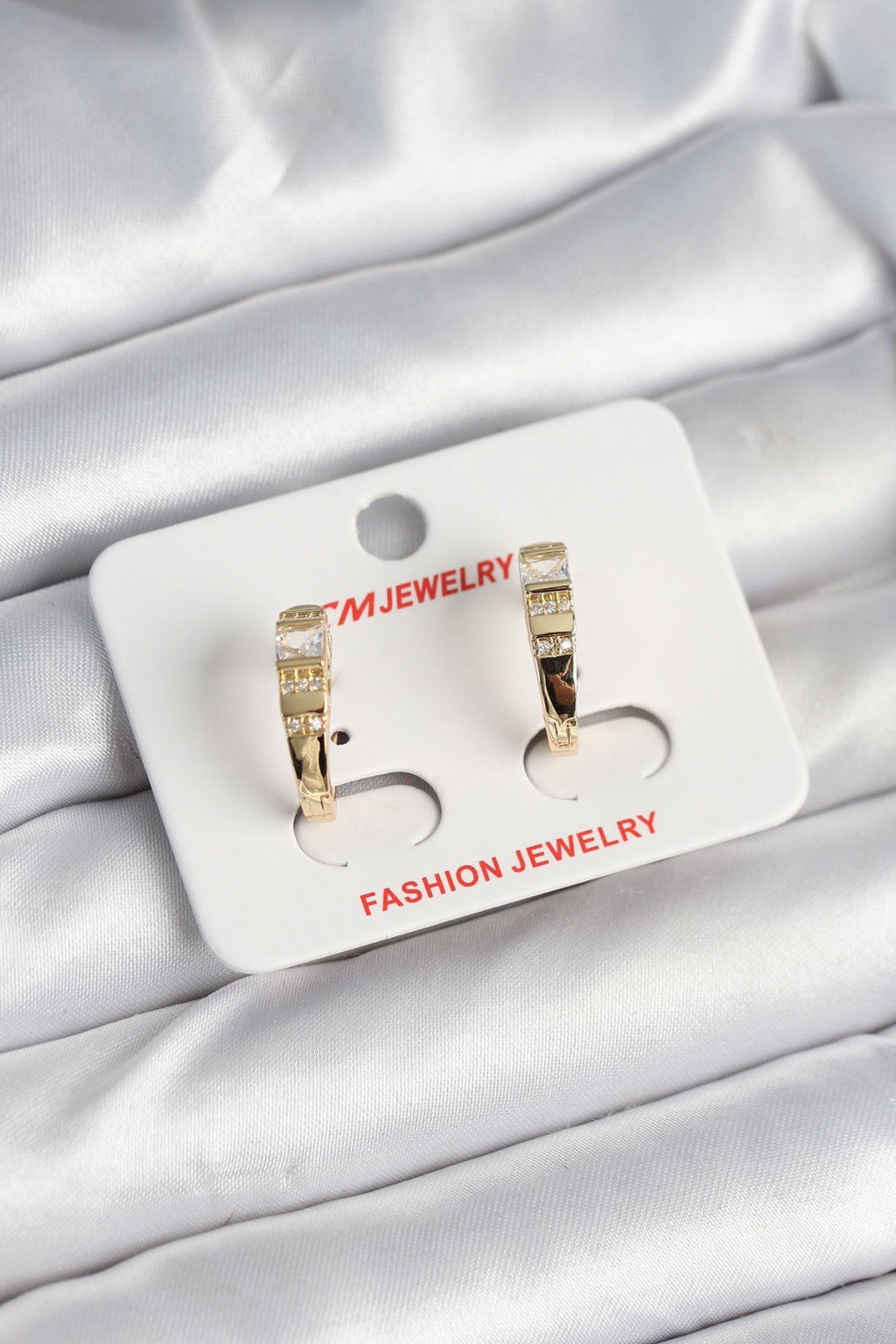 Pirinç Gold Renk Zirkon Taşlı Vintage Kadın Küpe -