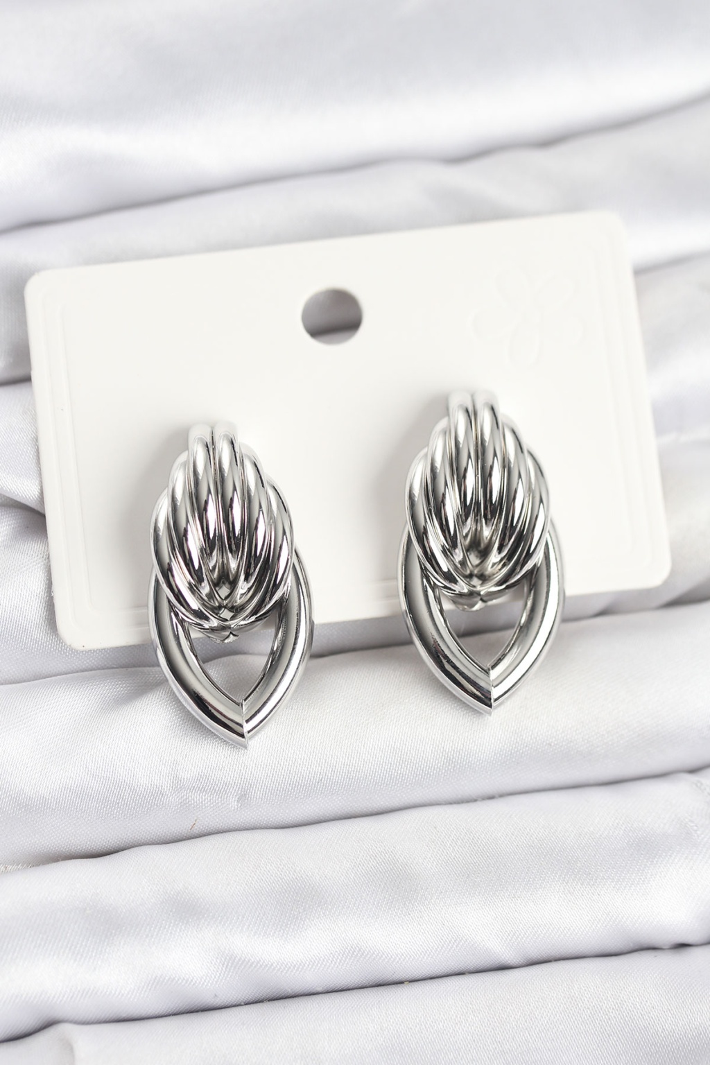 Pirinç Gümüş Renk Sarmal Damla Model Vintage Kadın Küpe - Lisinya