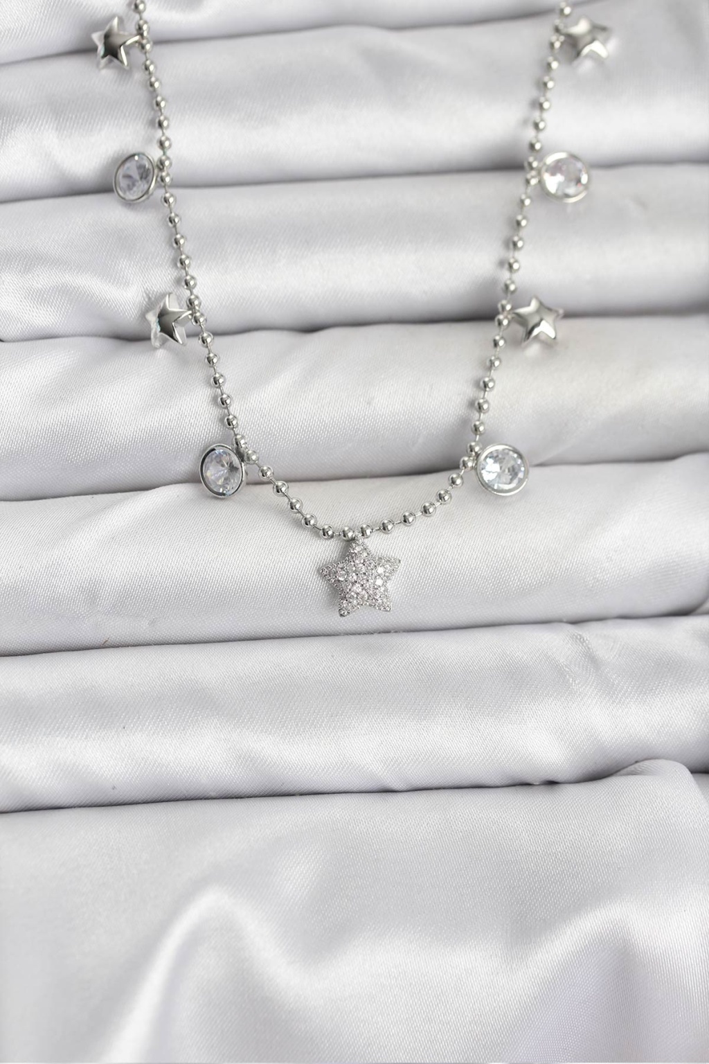 Pirinç Gümüş Renk Yıldız Model Kadın Kolye - Lisinya