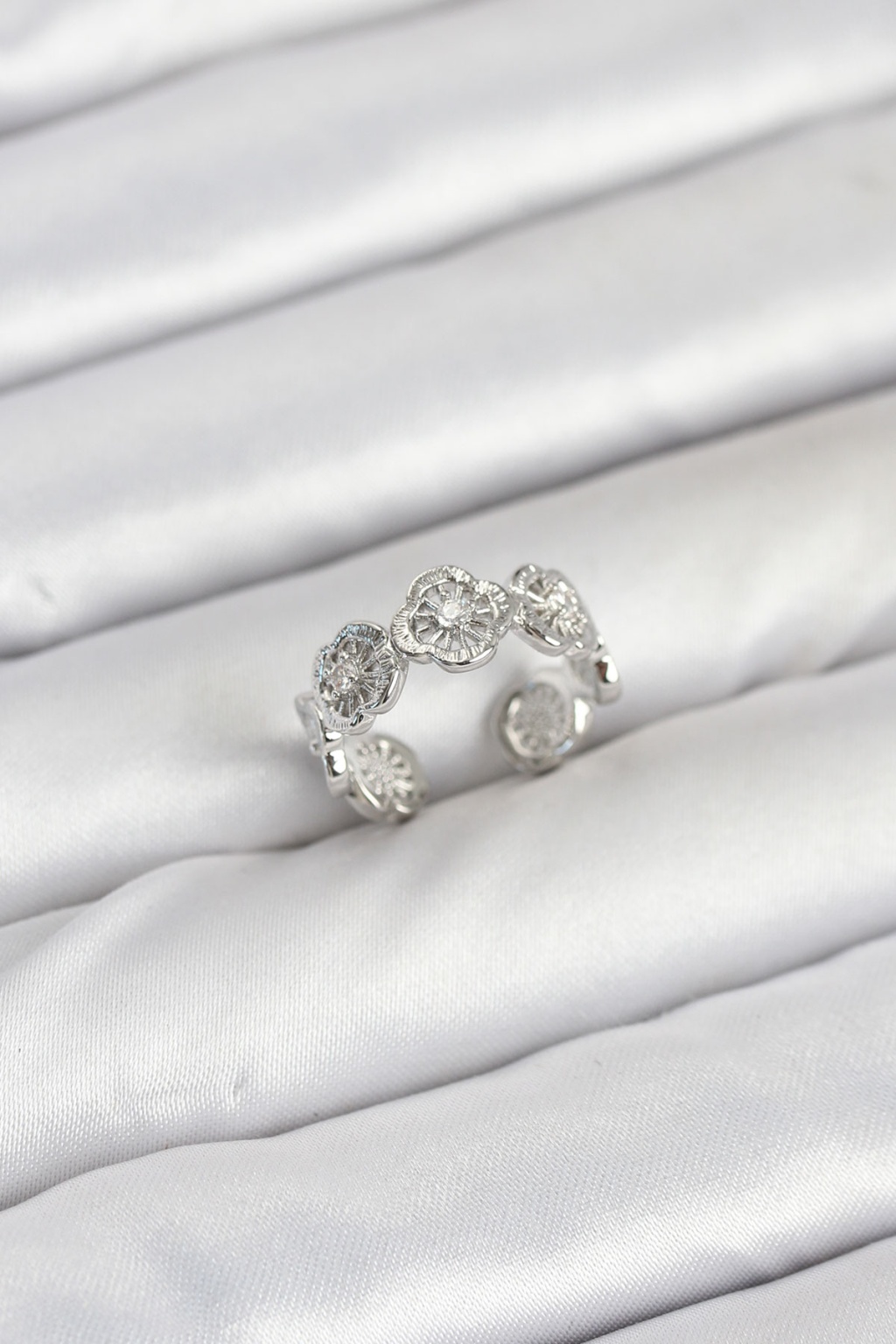 Pirinç Gümüş Renk Yonca Model Kadın Yüzük -