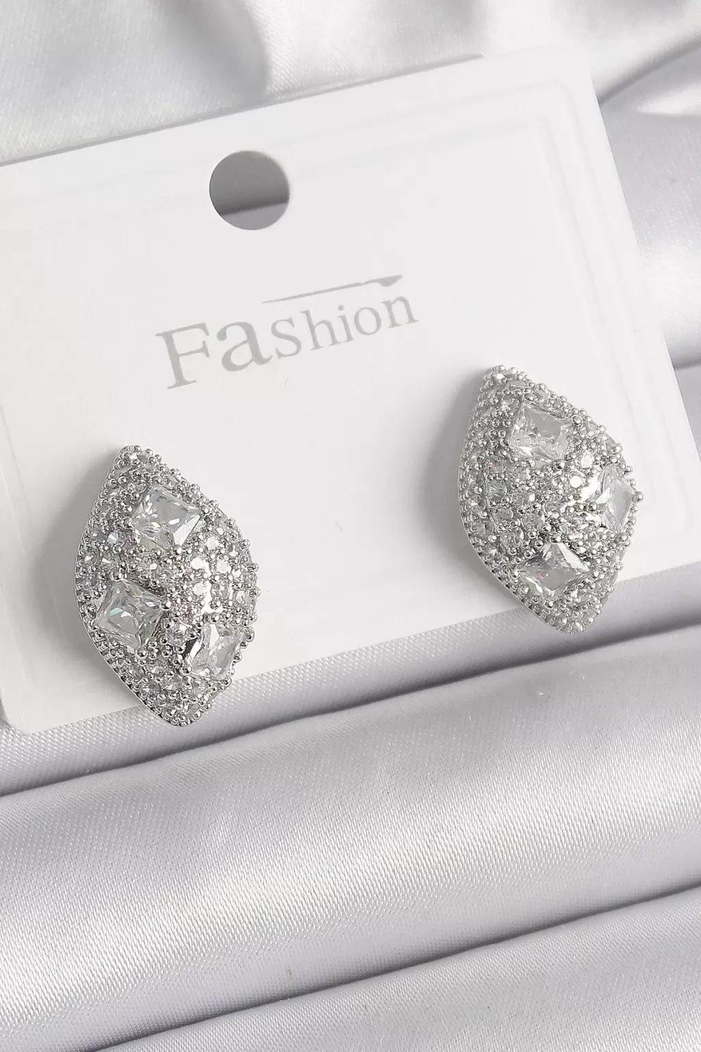 Pirinç Gümüş Renk Zirkon Taş İşlemeli Damla Model Kadın Küpe