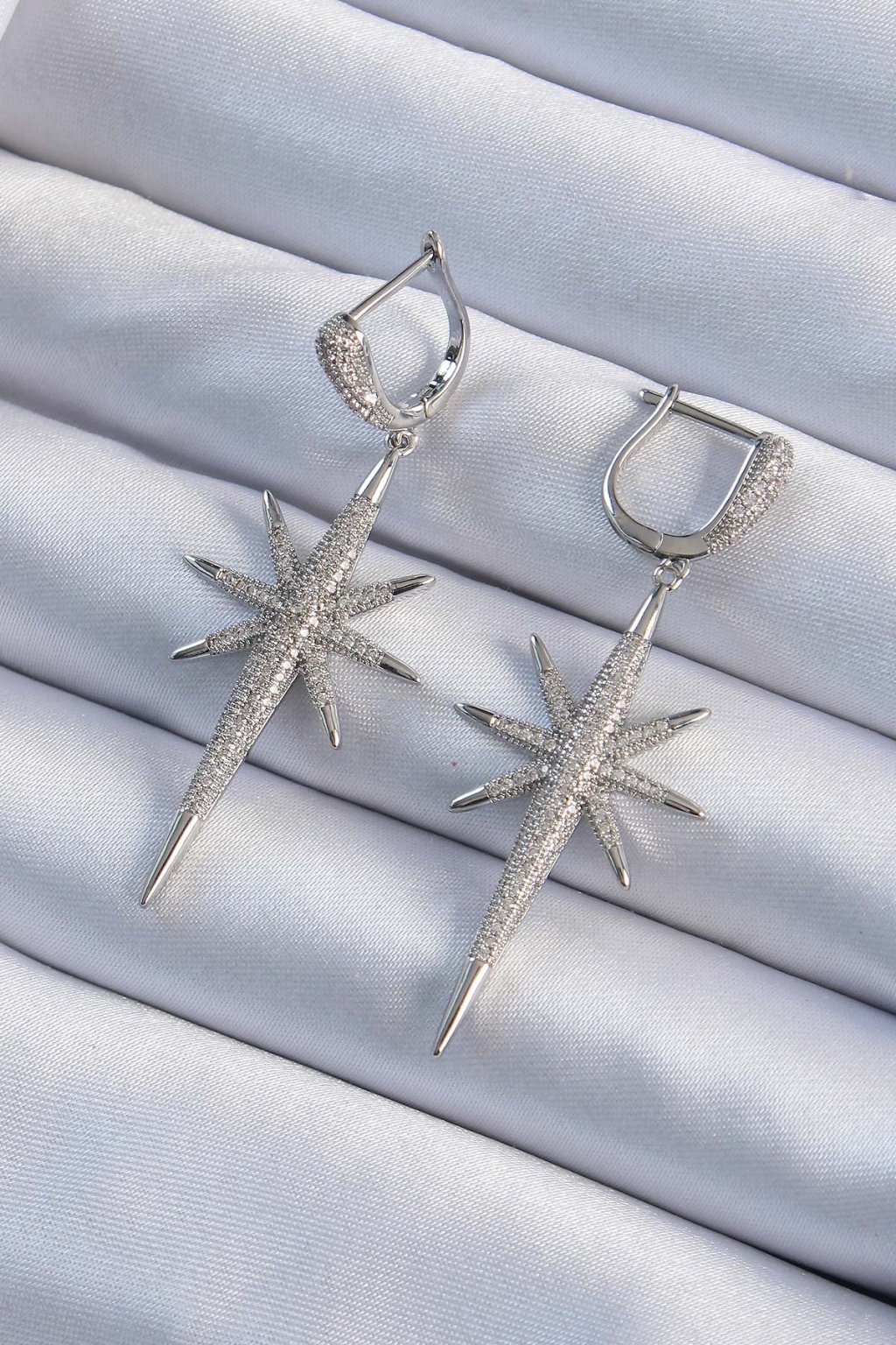 Pirinç Gümüş Renk Zirkon Taş Kaplama Kutup Yıldızı Tasarımlı Kadın Küpe - Lisinya