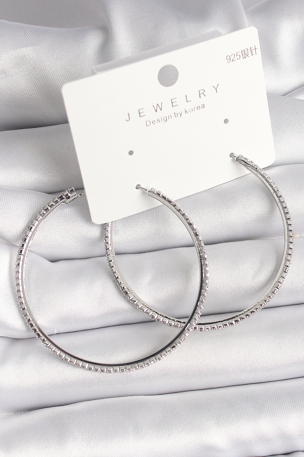 Pirinç Gümüş Renk Zirkon Taşlı Halka Model Kadın Küpe -