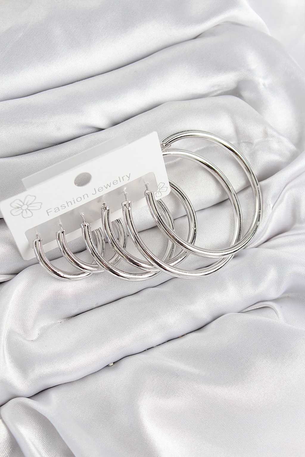 Pirinç Halka Model Gümüş Renk Kadın Set Küpe - Lisinya