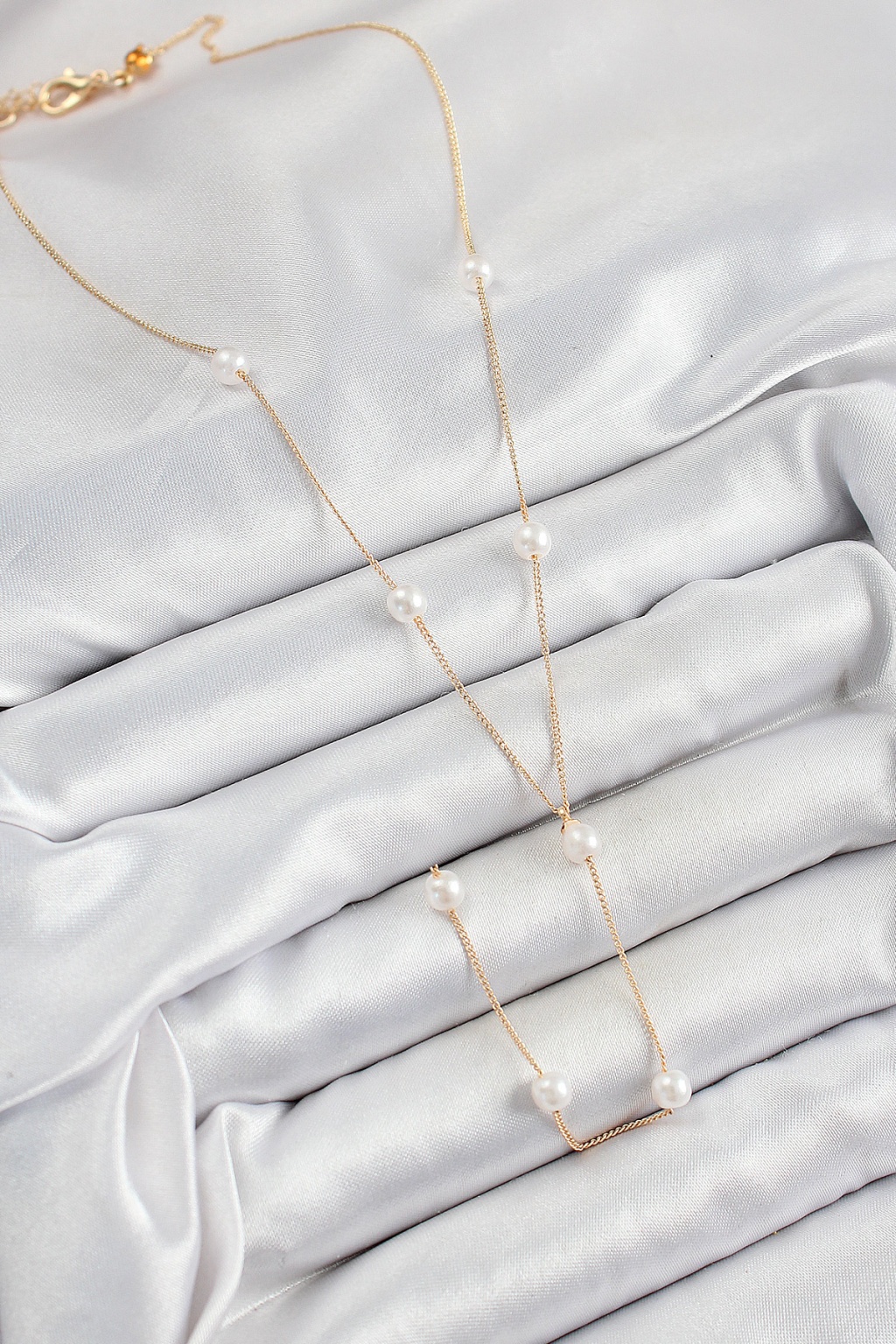 Pirinç İnci Figürlü Y Model Gold Renk Kadın Kolye - Lisinya